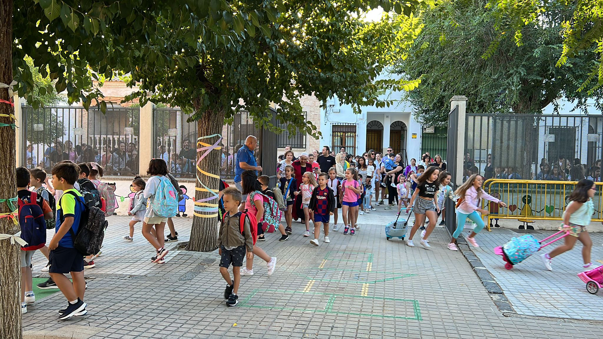 El curso 2022-2023 ha vuelto a la normalidad total en Almagro. Los tres colegios de la ciudad han comenzado las clases como lo hicieran hace dos cursos, en el año 2019 antes de la pandemia. Patios llenos, pupitres sin distancias de seguridad… Lo que no ha cambiado son los nervios, que otro lloro y las caras de expectación de los más pequeños. Unos 780 alumnos, entre los tres colegios- Paseo Viejo de la Florida, Miguel de Cervantes y Diego de Almagro, han dicho hoy adiós al verano. Por delante, periodos de adaptación, nuevas y nuevos maestros y nueve meses por delante de días mejores y peores, pero sobre todo jornadas de aprender y divertirse aprendiendo.