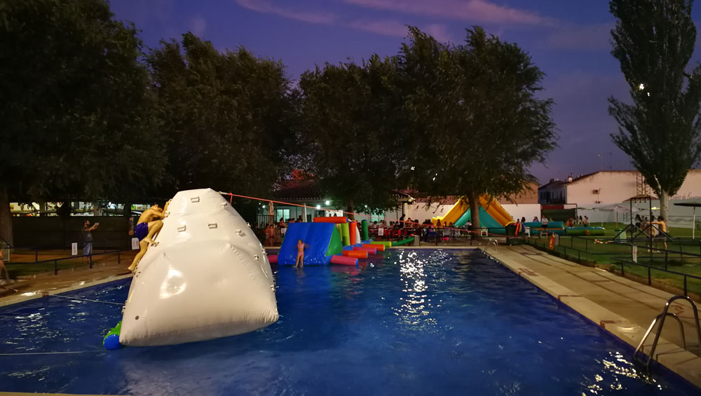 La actividad “Noche Joven en la piscina” finaliza este viernes. Pasarelas dentro y fuera de la piscina y una cama elástica acuática son las atracciones previstas para este último viernes nocturno de ocio en la instalación municipal.