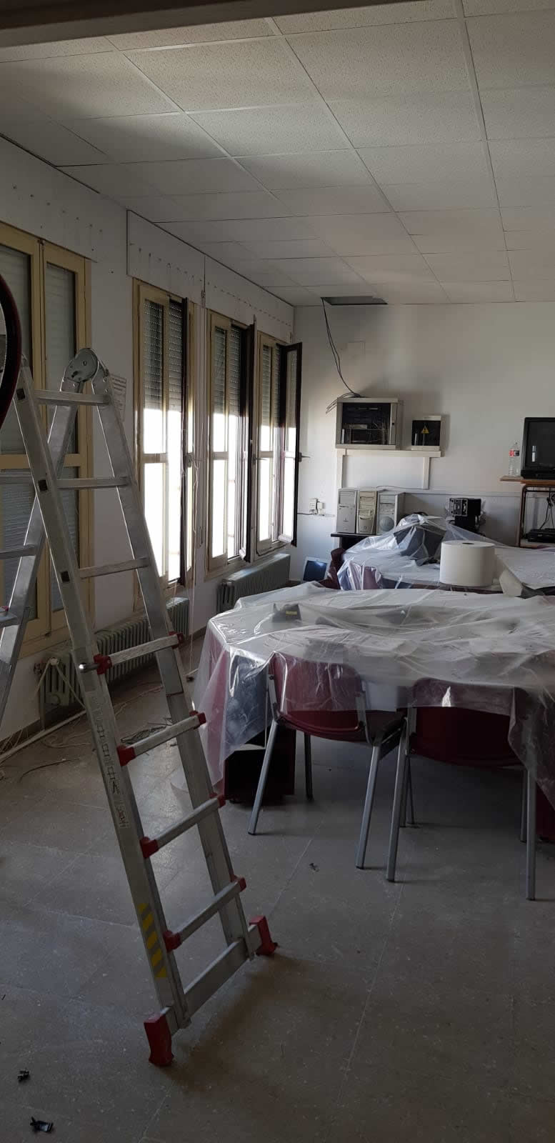 Las obras en el colegio Miguel de Cervantes se centran en la sustitución de todas las ventanas deterioradas y en algunos casos con el cerramiento en mal estado. Cada aula tenía doble ventana con un espacio entre ambas que, en muchos casos, no permitía la apertura total y ventilación. Las nuevas ventanas serán de aluminio con ruptura de puente térmico y doble acristalamiento.