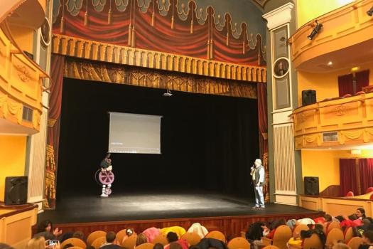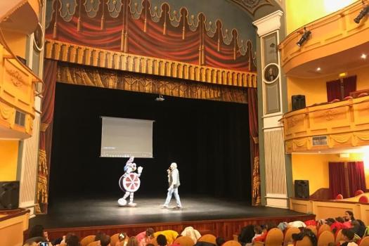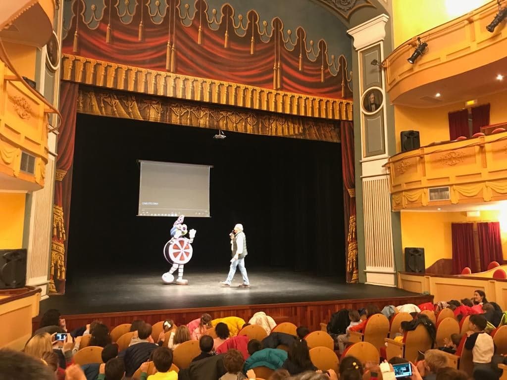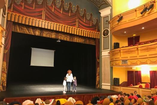 Los pequeños han visto el video “Mica” en el Teatro Municipal y han conocido a la mascota “Cinecito” con la que se han fotografiado. Para el desarrollo de la actividad, cada niño ha aportado 3 euros, uno de ellos se destinará a la compra de materiales del aula respiro para personas con discapacidad de Amfisa. También cada niño ha recibido una ficha para realizar en clase sobre la educación en valores.