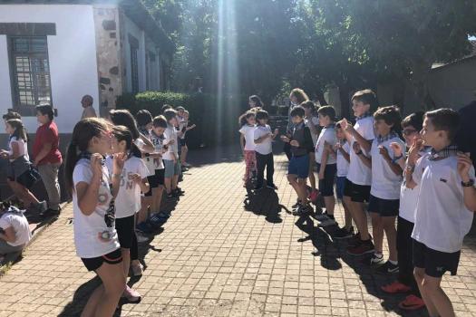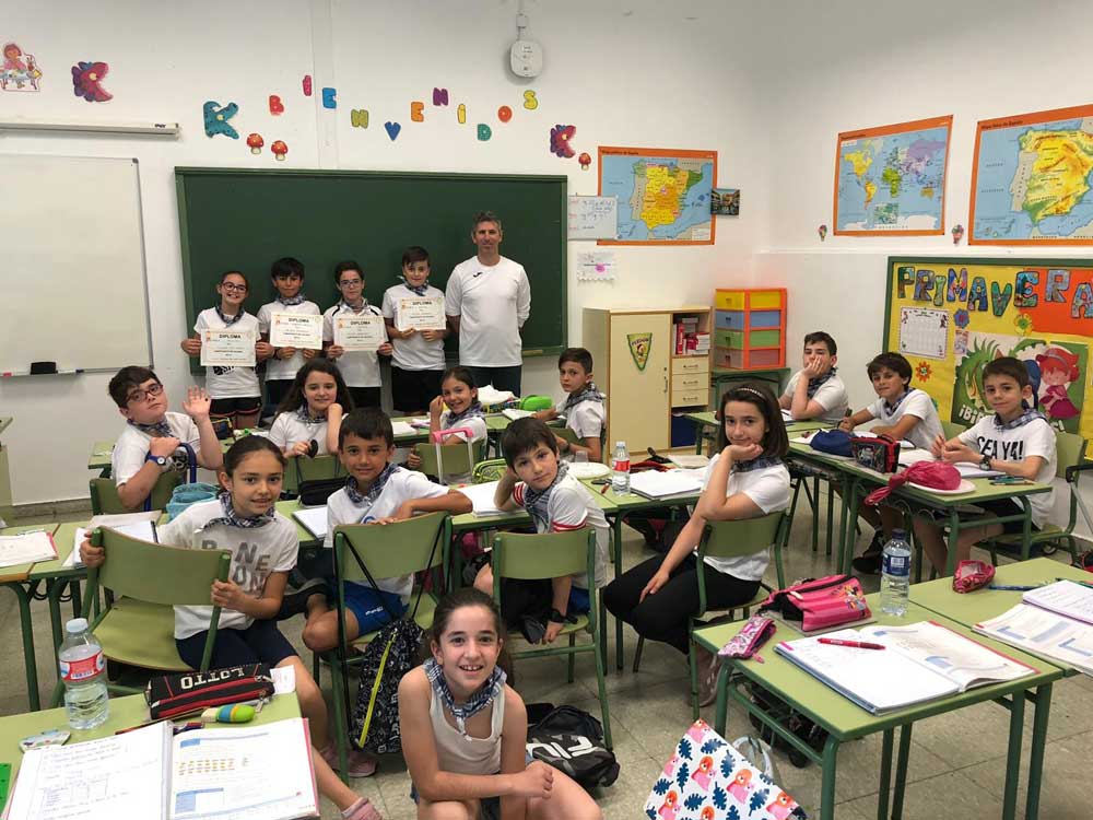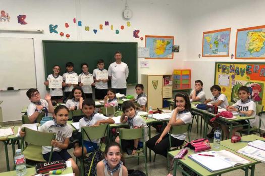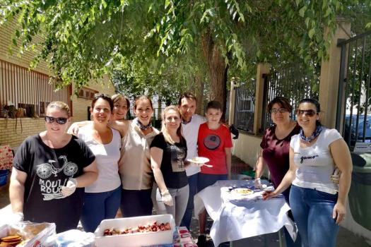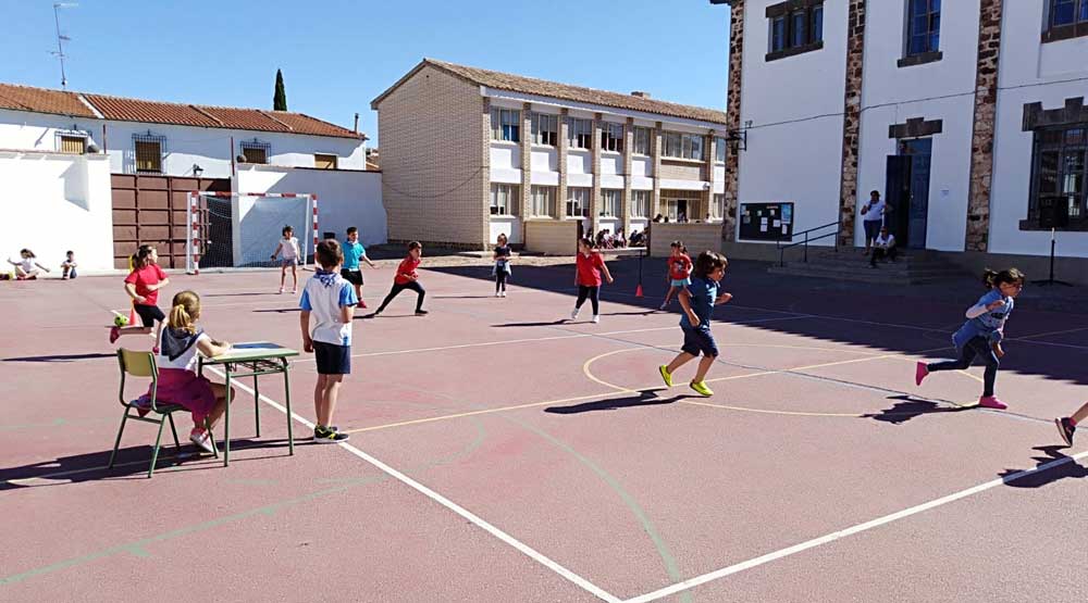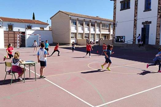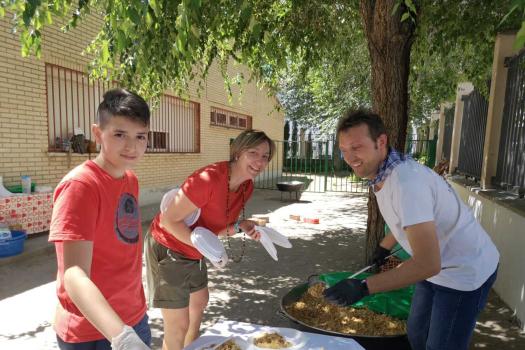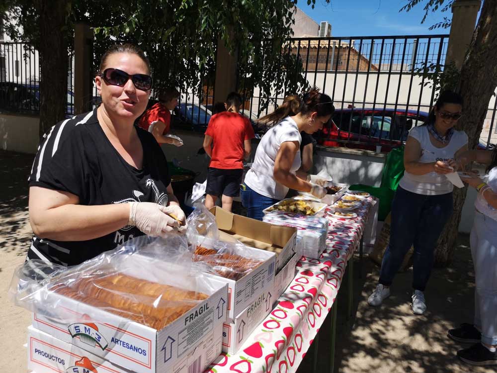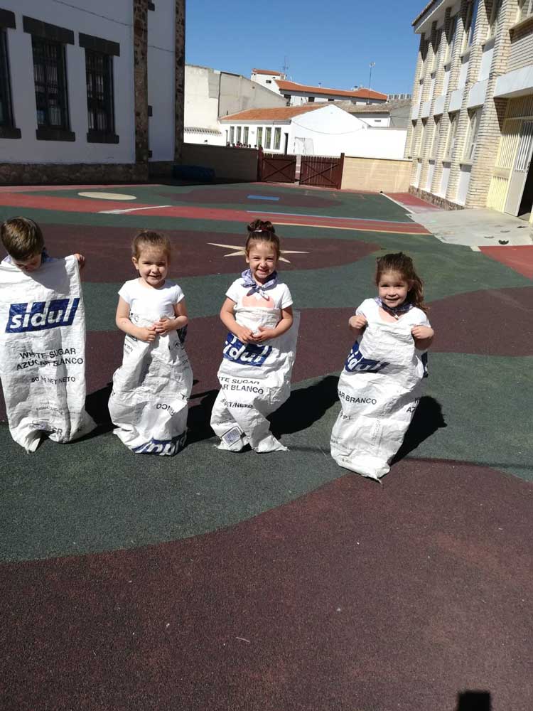El colegio Miguel de Cervantes también se vistió de blanco y con pañuelo de “yerbas” anudado al cuello. Bailaron jotas y fandangos y comieron unas suculentas migas. La jornada festiva comenzó con actividad física. Alumnos de todas las edades llegaron al centro escolar andando, primera de las actividades deportivas del día con el objetivo de promover hábitos saludables. También se desarrollaron talleres sobre tradiciones y temas relacionados con Castilla-La Mancha y las finales de balón prisionero, copball y ringo que han tenido lugar durante este año.