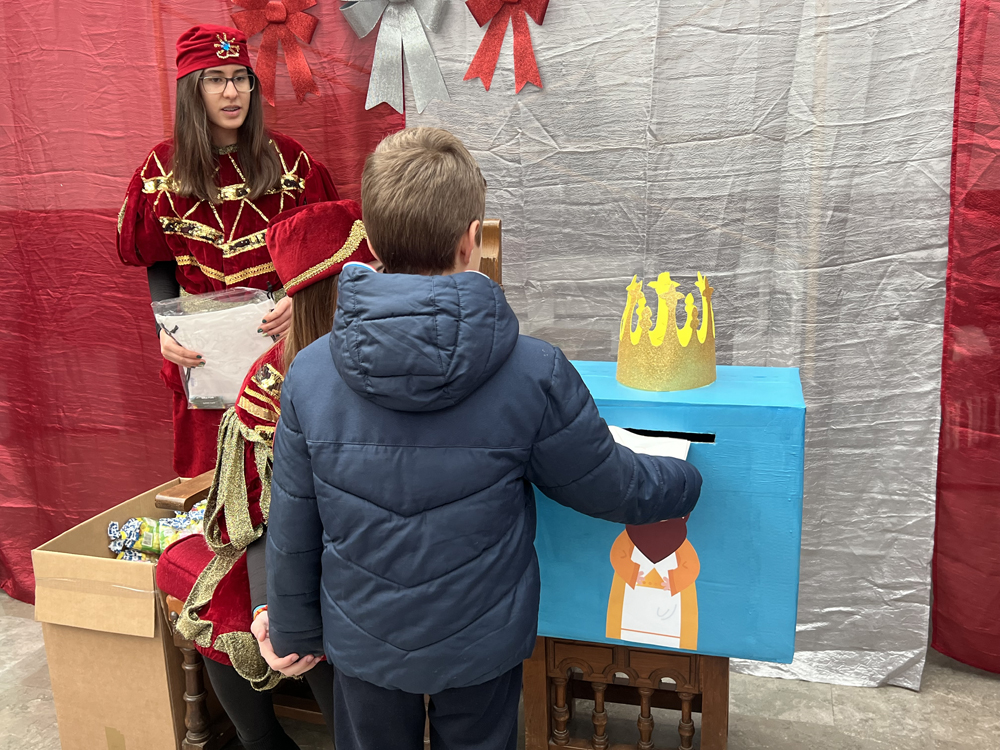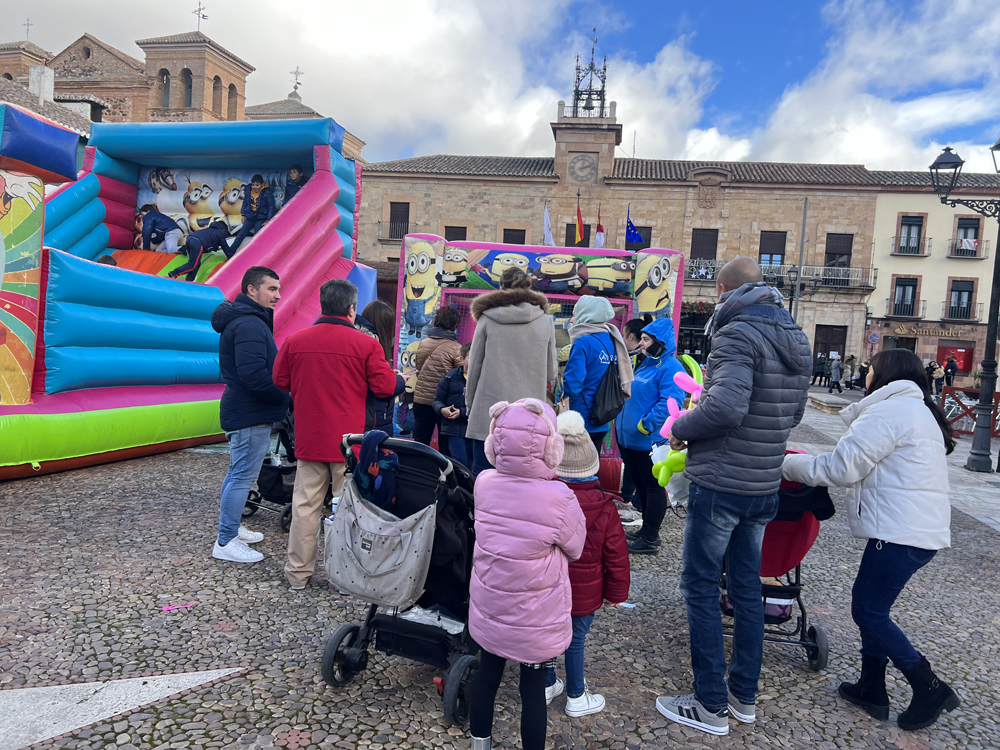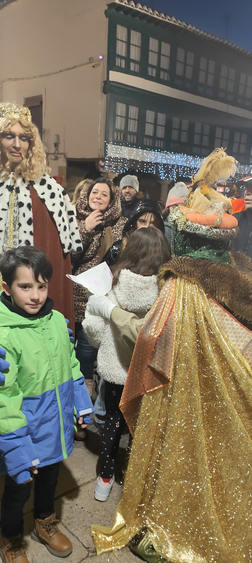La jornada comenzó con la entrega de cartas a sus pajes. Cada niño recibió una mochila para pintar y colorear. Además, la Concejalía de Infancia y Familia preparó actividades para los más pequeños e instaló un castillo hinchable en la Plaza Mayor, mientras la hermandad de Santiago invitaba a un chocolate caliente solidario.