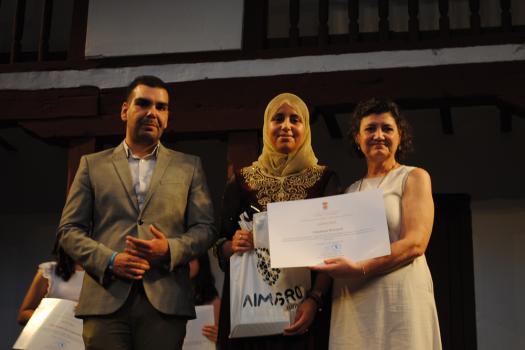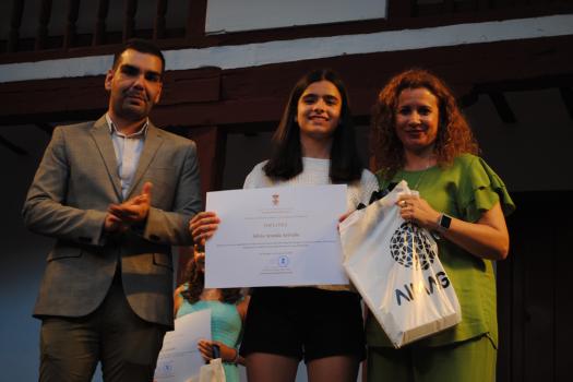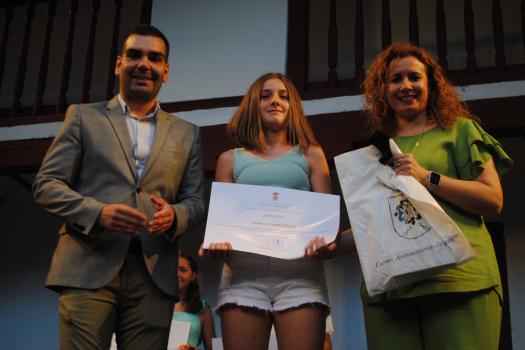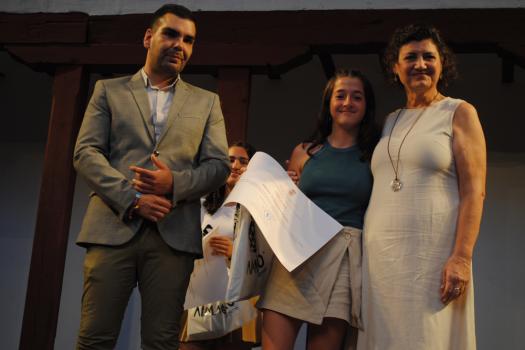 La entrega de diplomas y de un obsequio continuó con los mejores alumnos de ESO y Bachillerato. Primero, los estudiantes del instituto Clavero Fernández de Córdoba acompañados de su directora María Luis Muñoz, que tras ocho años en la dirección deja el cargo. Julia Sepúlveda Izquierdo y Blanca Triguero Chacón, ambas de 1º ESO; Irene Sepúlveda Reina (1º Bachillerato Ciencias) y Omaima Hassani (1º Bachillerato Humanidades). Después, subieron los mejores estudiantes del instituto Antonio Calvín con su director Miguel Cecilio Gómez: Lucía de la Rubia Arroyo (1ºESO); Noelia Ruiz de la Rubia (3ºESO), Nieves Guzmán Rincón (2º Bachillerato Ciencias); Adriana Raquel Rodríguez-Maestre Martínez (2º Bachillerato Humanidades); Sandra Ordoñez Rodríguez (2º FP Administración) y Francisco Javier Barba Cervantes ( 2ºFP Madera)