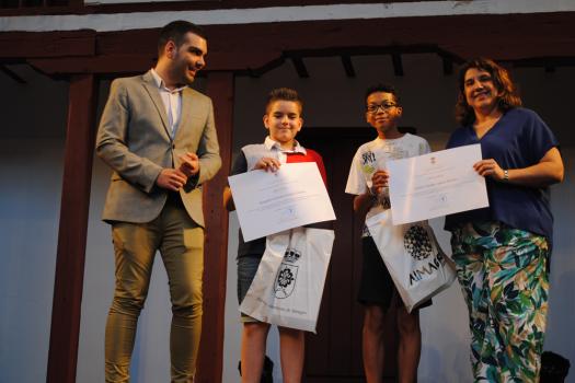 A continuación, subieron al escenario los alumnos de 6º de Primaria de los tres colegios y a sus respectivas directoras. Las primeros en recibir su diploma fueron Irene Díaz Aranda, Silvia Aranda Arévalo y Azahara Vargas Marín del colegio Diego de Almagro; a continuación, Paula Maestro Cuadra y Samuel García Ureña del colegio Paseo Viejo de la Florida y por último, Alejandro Serrano Gómez-Casero y Moisés Nicolás Aponte Jiménez del colegio Miguel de Cervantes.