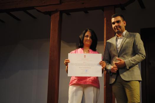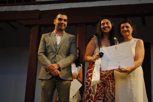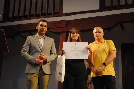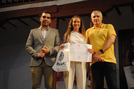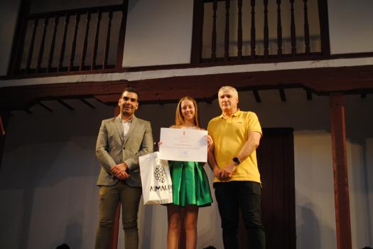 El acto continuó con el reconocimiento al mejor alumno de Almagro de este curso 2021-2022. El alcalde Francisco Javier Núñez hizo entrega de la beca económica del Ayuntamiento de Almagro por un importe de 1.000 euros a Nieves Guzmán que ha obtenido un 10 en todas sus asignaturas. El premio lo recogió su madre que explicó que su hija no pudo asistir por estar disfrutando con sus compañeros de unas merecidas vacaciones.