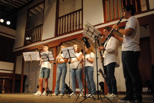 Tras sus palabras, el presentador del acto, Alvaro Ramos llamó a Jorge Araque García y al director de la Escuela Municipal de Música, Germán Huertas. Desde hace varios años, el mejor alumno de la escuela de música recibe también su reconocimiento. En este caso, el alumno premiado es de la especialidad de clarinete y formó parte del grupo de músicos que amenizó el acto de ayer con tres actuaciones, cada una dedicada a una banda sonora de películas tan conocidas como Piratas del Caribe o UP.