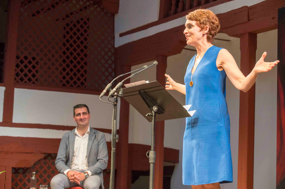 La escritora Elvira Lindo fue la encargada de realizar el laudatio a la actriz en el acto inaugural del 42 Festival Internacional de Teatro Clásico