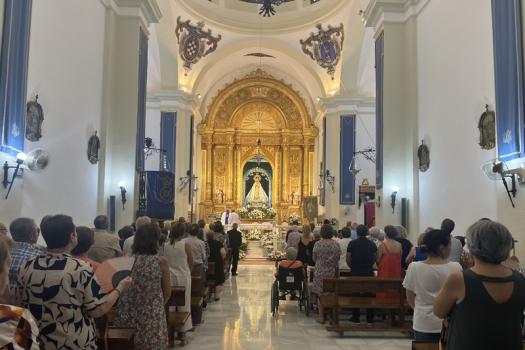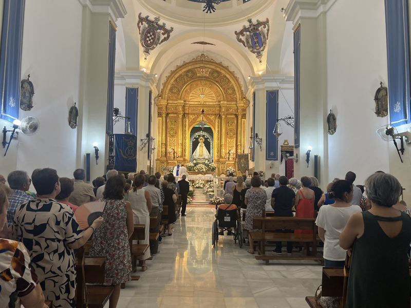 La eucaristía fue oficiada por el párroco Joaquín Gutiérrez, quien subrayó la doble faceta de la Virgen como madre y maestra, modelo de vida para los creyentes. Habló de la disponibilidad constante de la Virgen como un valor esencial y ejemplo de vida cristiana.
