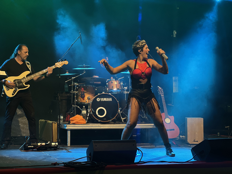 Tras los actos religiosos, la explanada del santuario en la noche del lunes se convirtió en un hervidero de personas que disfrutaron de la música y el ambiente festivo. Primero para escuchar a la Banda de Música de Almagro en su tradicional concierto de pasodobles que recibió el cariño del público con sus aplausos. Después, uno de los momentos más esperados por la novedad, el tributo al grupo Mecano, ofrecido por Mundo Futuro con la vocalista almagreña, Miriam García, que congregó a numerosos asistentes en torno al escenario y a la barra instalada para la ocasión.