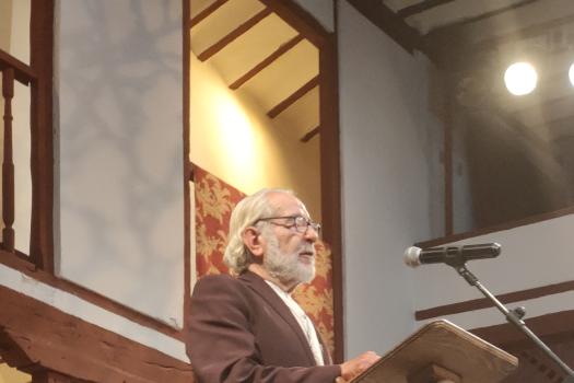En nombre de la escritora almagreña, que excusó su presencia por su edad, el periodista, escritor e investigador Francisco José Martínez Carrión, ha agradecido que hayan elegido su nombre para el certamen literario y ha vuelto a transmitir su pasión por la literatura, por la poesía en la que la autora quiere transmitir amor y belleza y lo ha hecho, una vez más, a través de un poema leído en su nombre. Al acto ha asistido su hija Margarita, sus nietos Margarita y José Ramón y su biznieta. A continuación, Luis Molina, director, actor y productor teatral, además de director del CELCIT ha leído el poema escrito por Manolita Espinosa dedicado al Corral de Comedias, titulado “Voz y alma del Corral de Comedias”.