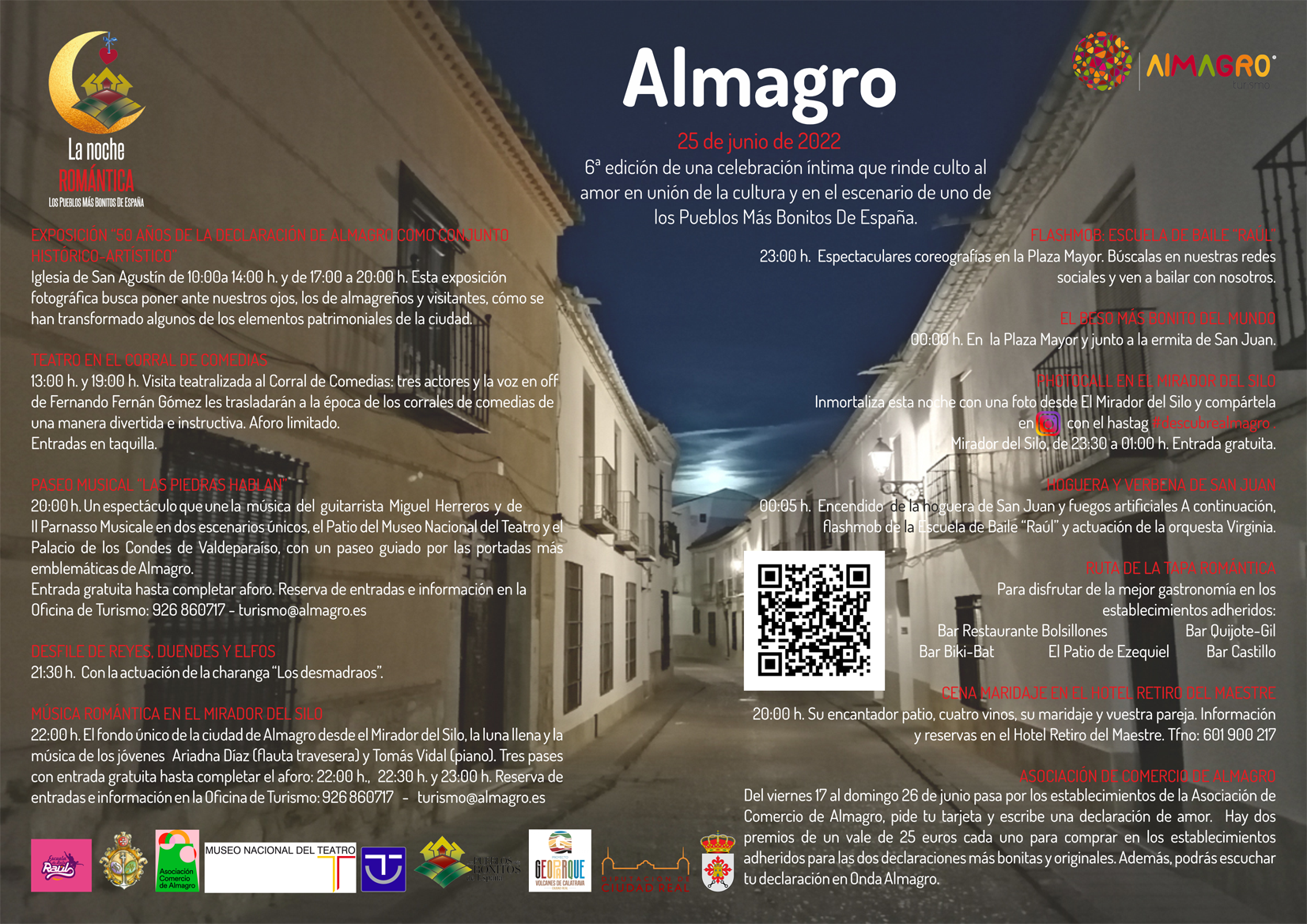 Almagro ya tiene preparada su especial Noche Romántica que se celebrará el próximo sábado 25 de junio. Será la sexta edición, de la mano red de la asociación de los Pueblos Más Bonitos de España, que esta noche íntima que rinde culto al amor unido a la cultura tiene lugar en la ciudad encajera.