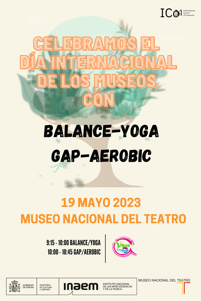 Por su parte, el Museo Nacional del Teatro, siguiendo la temática de este año, “Museos, sostenibilidad y bienestar” va a realizar dos actividades deportivas en el claustro del edificio durante la mañana del 19 de mayo. Con estas actividades se pretende unir el bienestar físico y mental que produce hacer deporte con el edificio del museo, englobándolo en un todo.