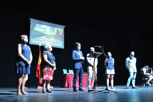 Casi un centenar de almagreños, costureras, casi todo mujeres, confeccionaron mascarillas durante esos primeros meses de pandemia. Solo cuatro pudieron subir al escenario para agradecer su ayuda. El nombre de cada uno de los colaboradores que realizó mascarillas se escuchó y se vio en un video preparado como reconocimiento a todos. Al finalizar el acto, también cada una de ellos, recibió un diploma.
