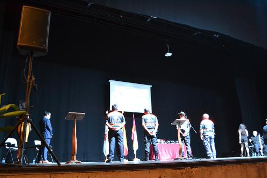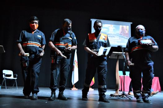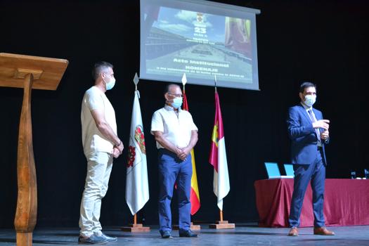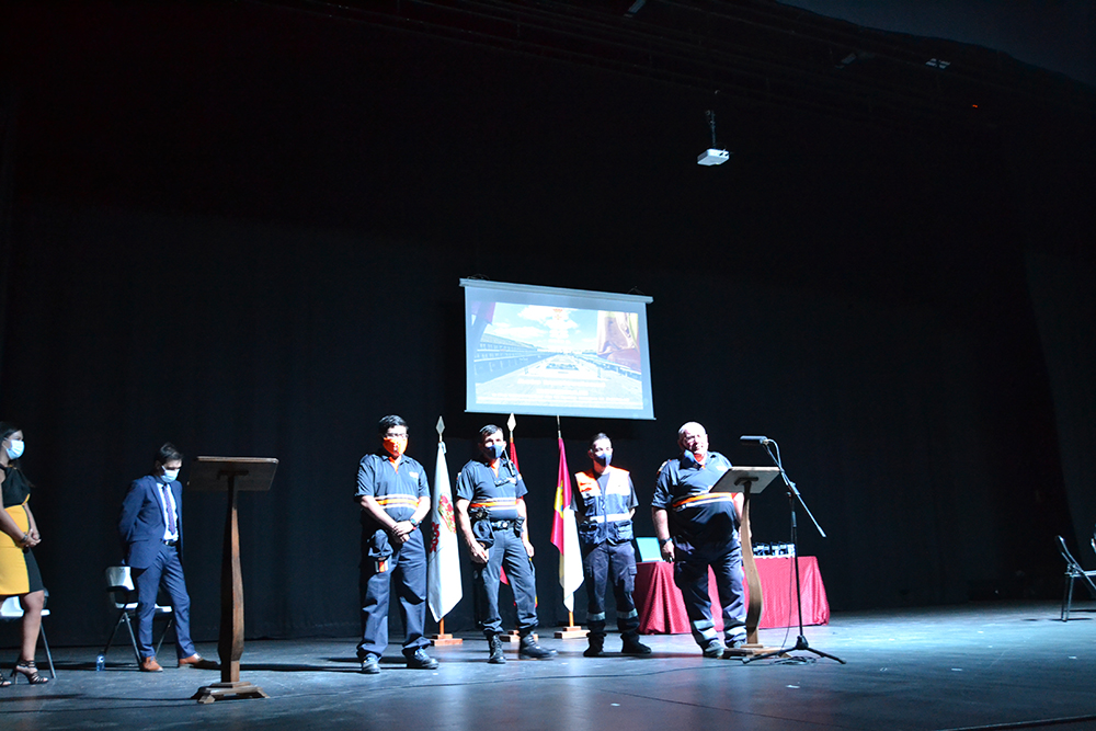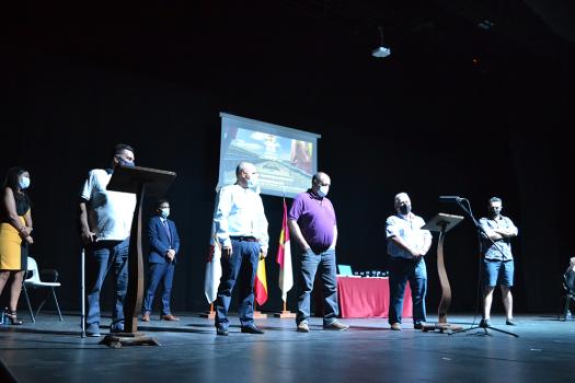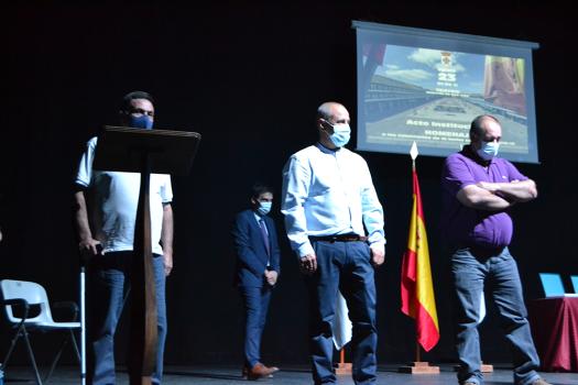 Protección Civil de Almagro está formado por una veintena de voluntarios, cuatro de ellos, recibieron en nombre de todos, la placa de reconocimiento de manos del alcalde. Francisco Martín Briñas como responsable de la agrupación local habló de la labor que realizaron, parte de ella, se pudo ver en el video preparado para el acto en el que se pudo ver su desinteresado trabajo llevo a cabo en los primeros momentos y más difíciles de la pandemia.