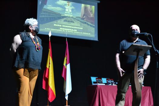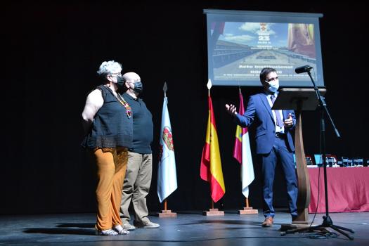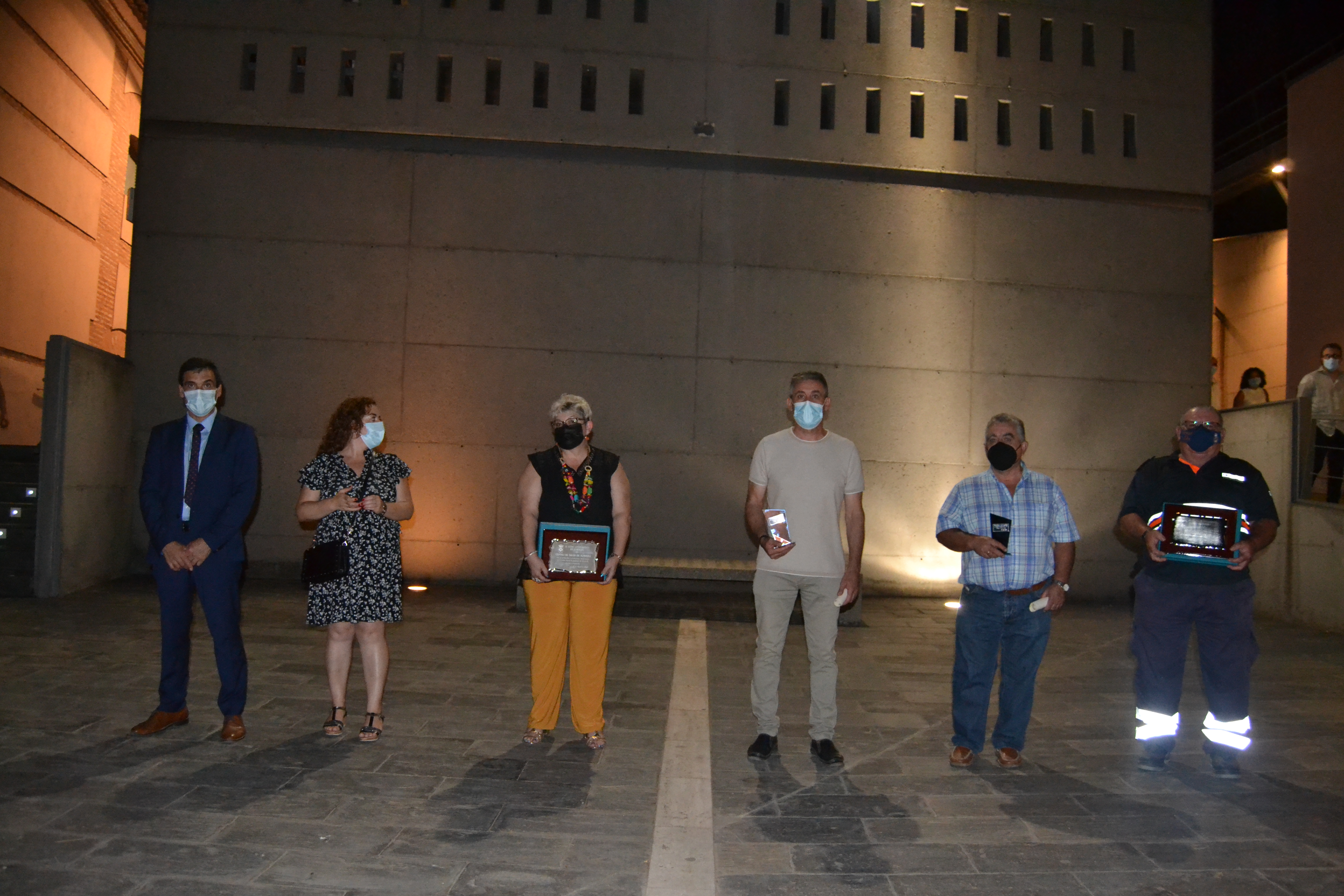Tras las palabras del regidor almagreño, la presentadora del acto invitó a cada uno de los homenajeados a subir al escenario del Hospital de San Juan. En primer lugar, a los sanitarios, representados por José Manuel García de León Esteban (enfermero) y Paula Torres Aranda (personal de administración). En nombre de sus compañeros del centro de salud de Almagro, agradecieron la placa recibida. El enfermero que ahora junto con su compañera de Administración organiza la vacunación en Almagro y Valenzuela de Calatrava dijo que “estamos a vuestra disposición, de todo el pueblo de Almagro, estuvimos, estamos y estaremos”.