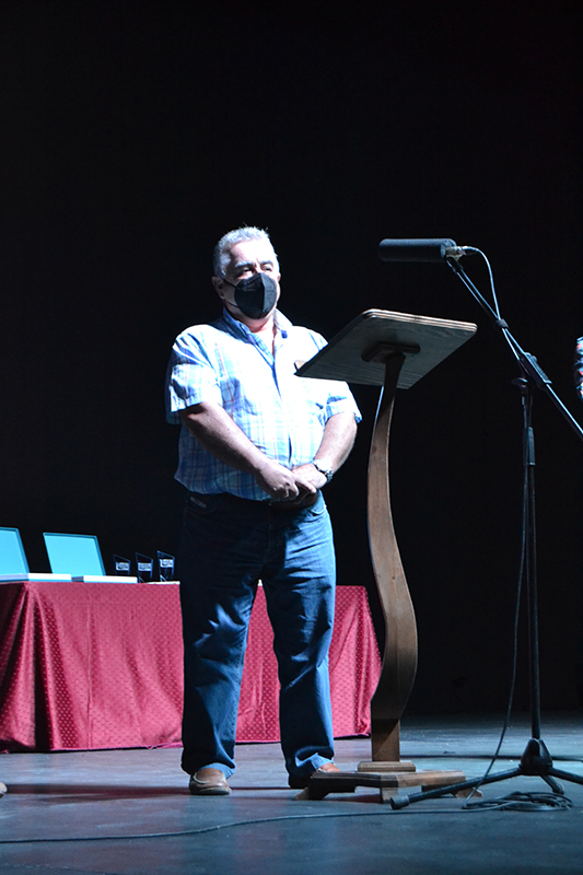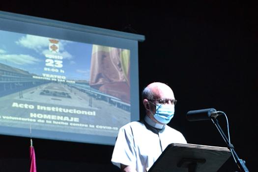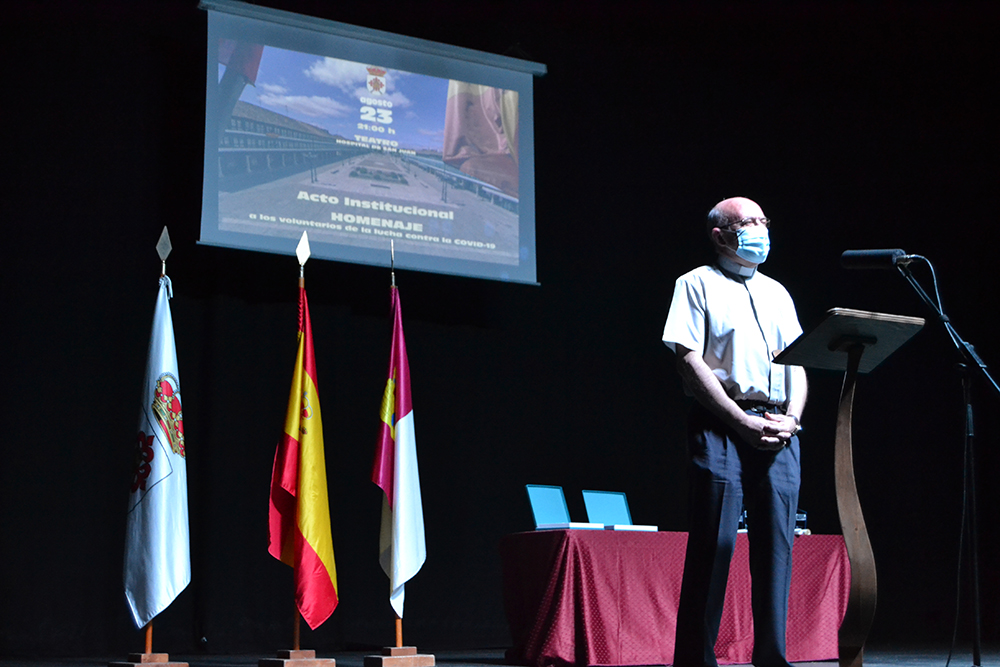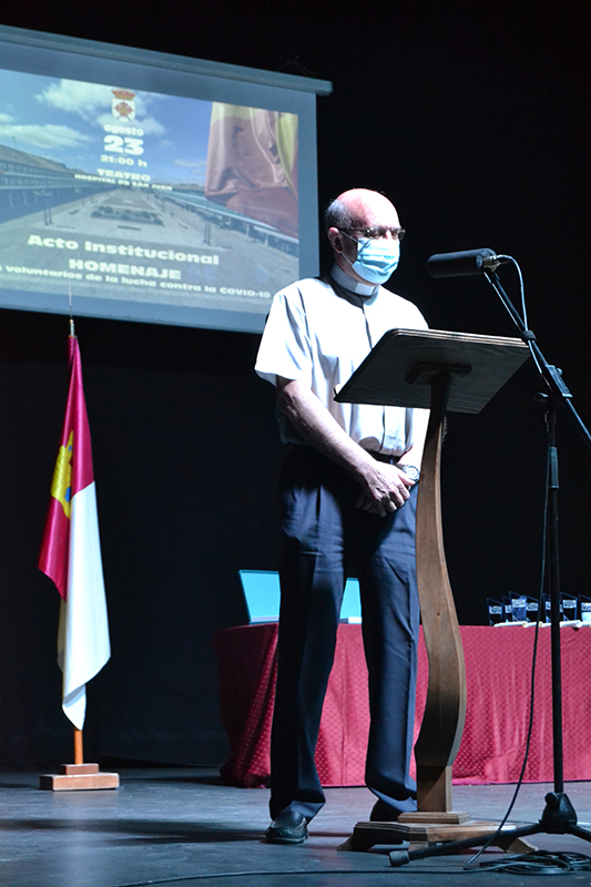 El siguiente en subir al escenario fue el párroco Ángel Daniel de Toro a quien le tocó la parte más dura de la pandemia. El sacerdote compartió alguna de las anécdotas vividas y las veces que pidió no tener que salir de casa, al contrario de muchos vecinos, que estaban deseando salir a la calle. Ángel Daniel se encontró en alguna ocasión casi solo en los entierros o con vecinos de la persona fallecida, sin familiares y reconoció que más de un día, tuvo que parar su coche de regreso de un entierro por no ver nada a causa de las lágrimas. Agradeció también el apoyo recibido de muchas personas, en especial, a los sanitarios del centro de salud que le proporcionaron material al inicio de la pandemia.