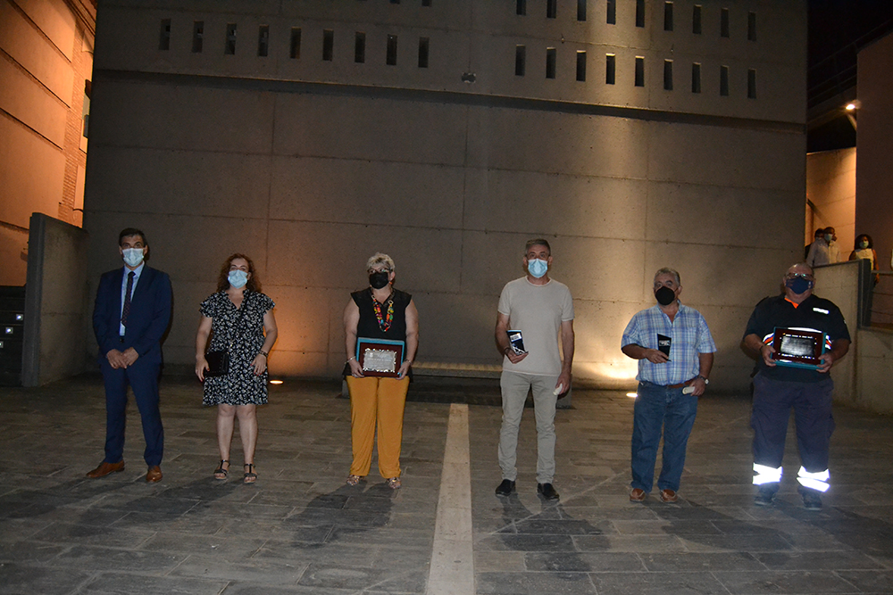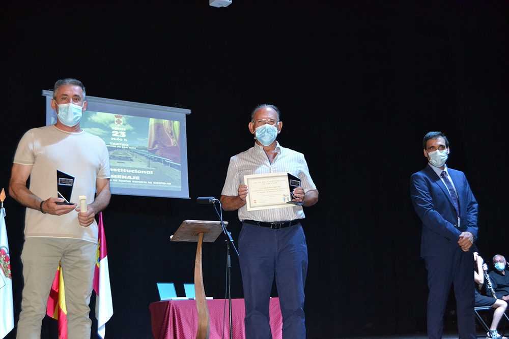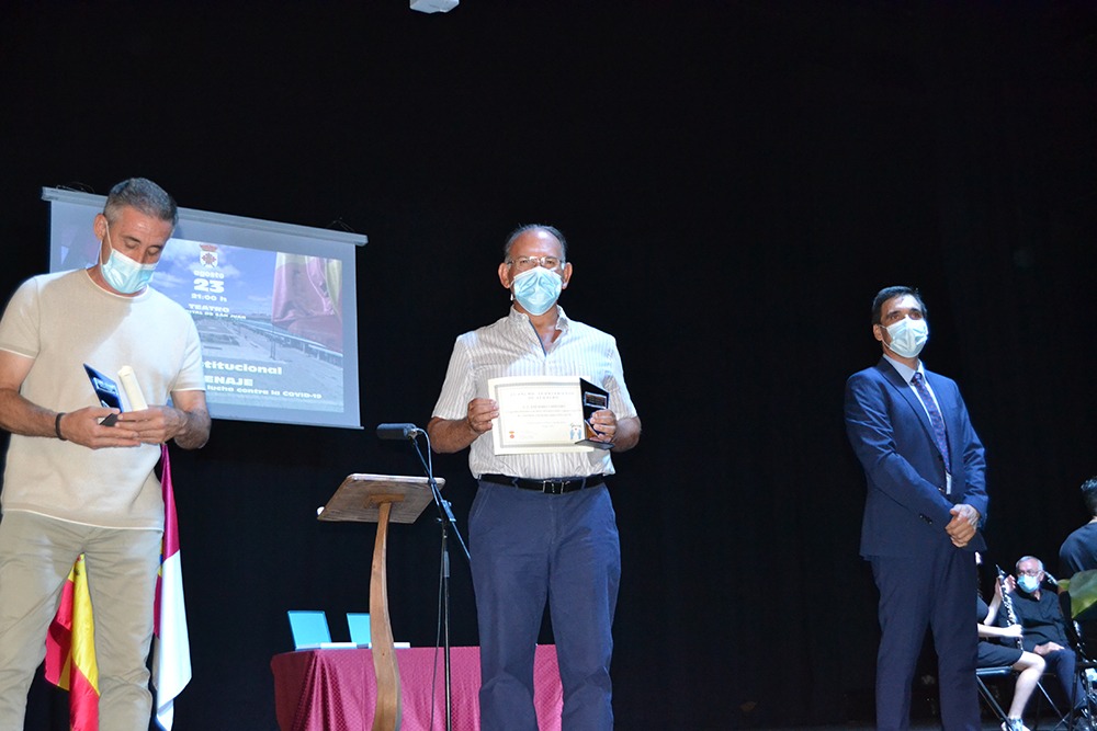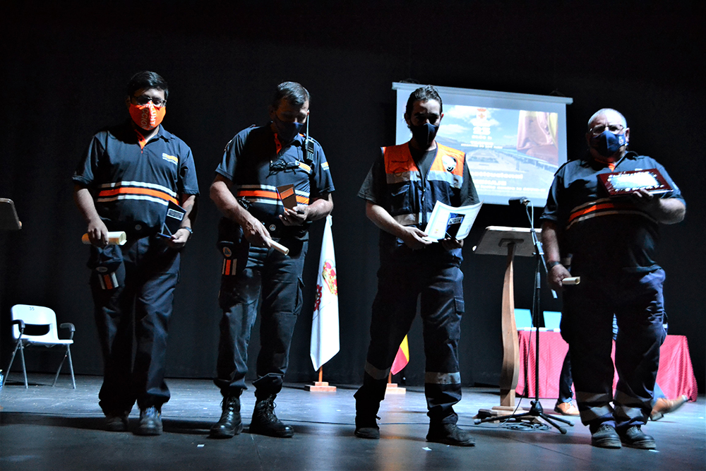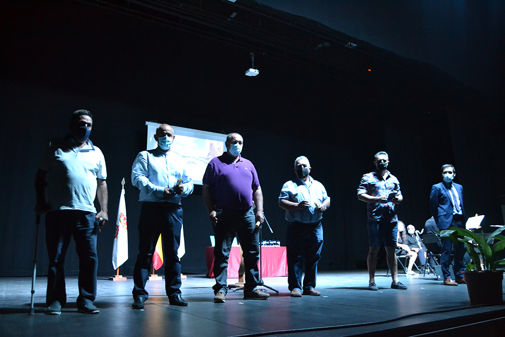 A continuación, una representación de Protección Civil recibió la siguiente placa por la importantísima y ardua labor que desarrollaron durante los primeros meses de pandemia, “realizando las compras a las personas mayores, recogiendo y llevando el material para las mascarillas, llevando las máquinas de ozono de un lugar a otro…”. Mención especial para el que fue miembro de la agrupación local, José Miguel Rodríguez Escobar que falleció durante la pandemia, hace aproximadamente un año.