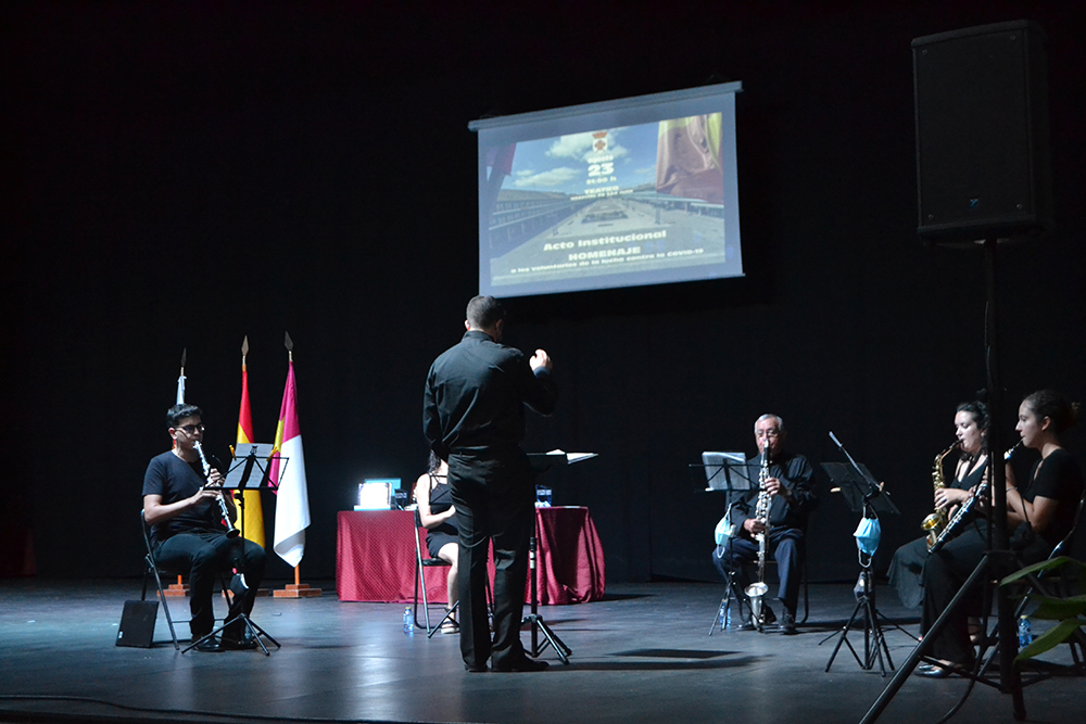 El acto estuvo amenizado por la música del grupo de cámara, un quinteto formado por miembros de la banda de música de Almagro. A lo largo de todo el acto interpretaron varios temas de películas tan conocidas como Leyendas de Pasión o La vida es bella.