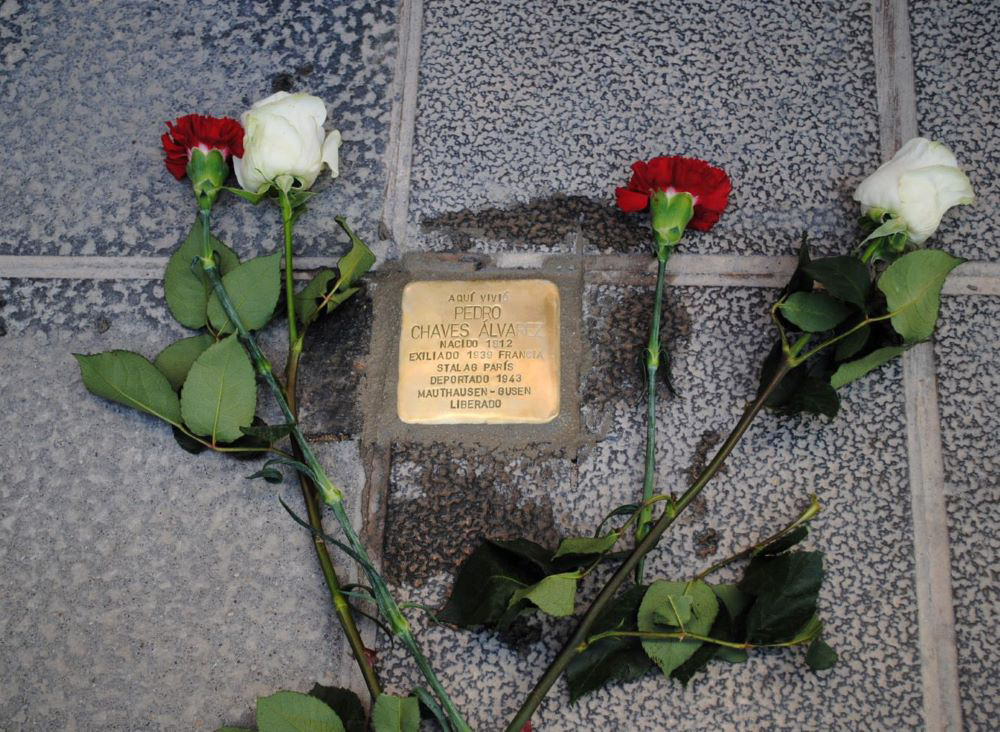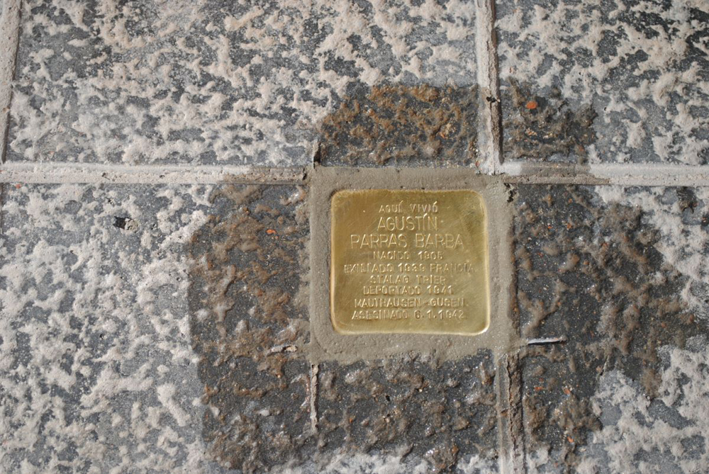 Enfrente de las casas en las que vivieron de Pedro Chaves Álvarez, Agustín Parras Barba, Manuel Ruiz López y Antonio Rodríguez Espinosa se ha colocado un ‘Stolpersteine’, placa con su nombre y una biografía escueta de ellos.