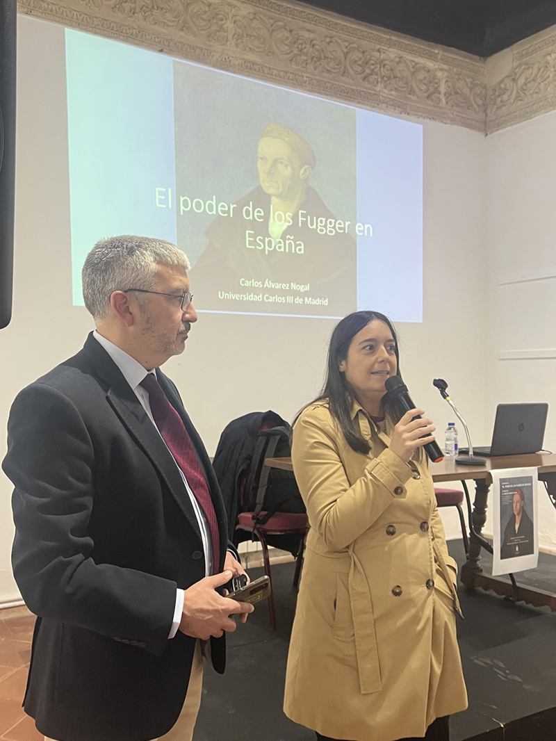 Durante la charla, Álvarez Nogal explicó la historia de la familia Fugger, desde sus inicios en Augsburgo hasta su expansión y consolidación en Europa y España. Se destacó la figura de Jacobo Fugger (1459-1525), apodado como «Jacobo el Rico», quien transformó el negocio familiar textil en un imperio financiero y minero, controlando minas de plata y cobre y financiando emperadores y reyes europeos.
