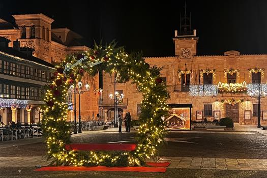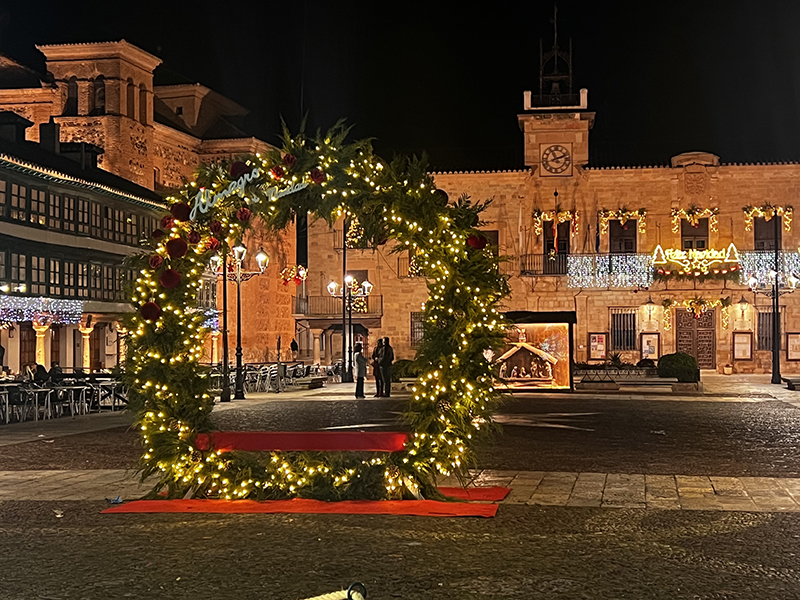 La Plaza Mayor estrena una gran corona navideña a modo de photocall y sus calles aledañas y barrios de la ciudad lucen una decoración diseñada con esmero, empleando materiales naturales y reciclados, gracias al trabajo coordinado entre distintas áreas municipales y voluntarios