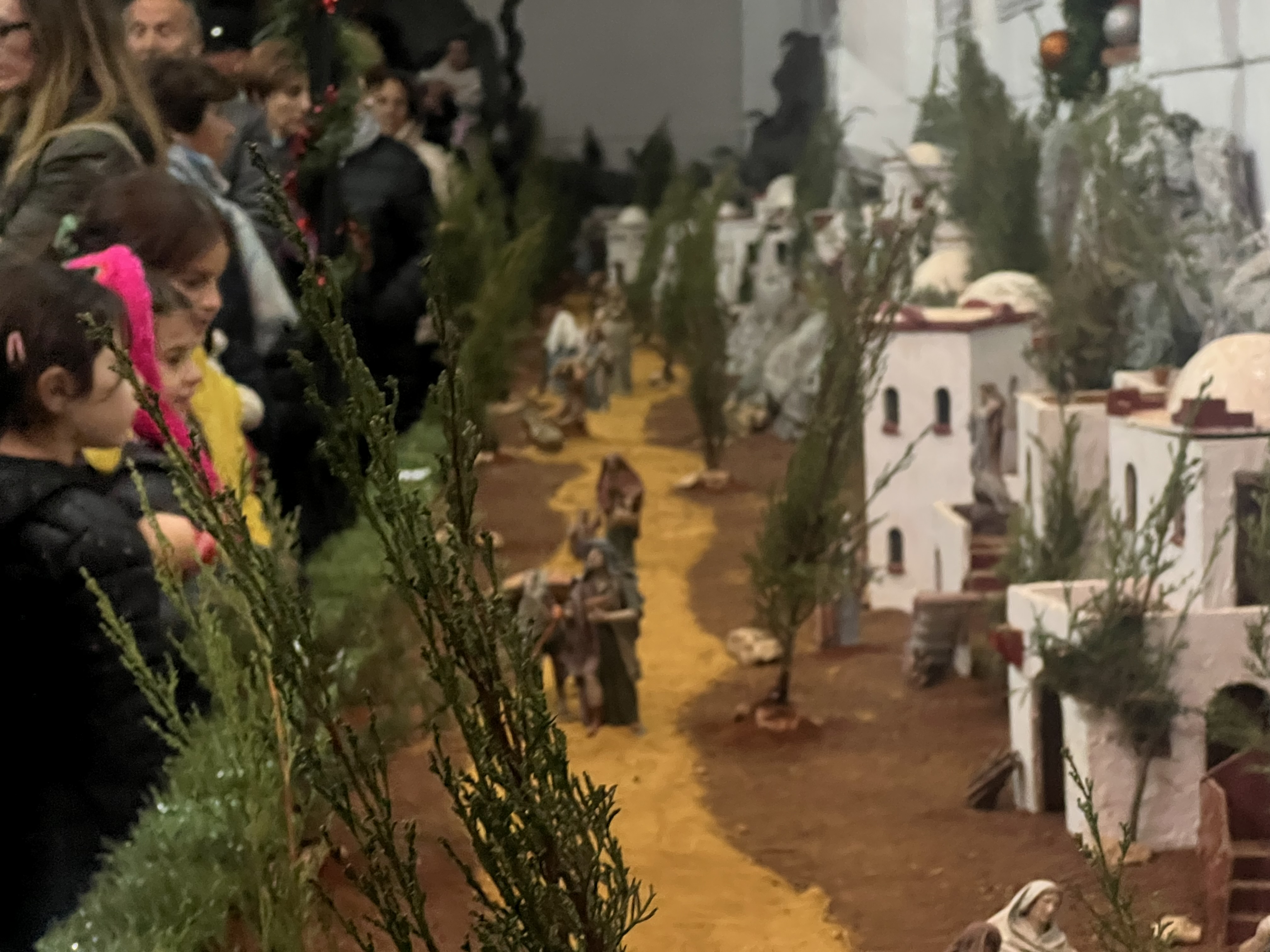 El Belén municipal, que cuenta con unas 400 piezas, sigue un recorrido cronológico que comienza con la Anunciación del Ángel a la Virgen, pasando por el sueño de San José, la Visitación de Santa Isabel, la Matanza de Herodes, el Empadronamiento de Jesús y la Huida a Egipto. Estos momentos clave de la historia sagrada están destacados por puntos de luz que guían al visitante.