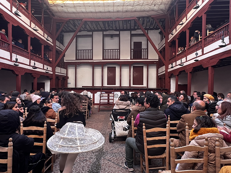 Guiados por una niña y un ciego, los asistentes han conocido el Corral de Comedias. La función ha demostrado cómo las obras del Siglo de Oro siguen siendo relevantes en la actualidad y continúan enseñando lecciones sobre la vida. La compañía teatral ha representado dos entremeses clásicos: El marión de Quevedo y Las aceitunas de Lope de Rueda, aderezados con villancicos tradicionales de Navidad, sumergiendo a todos en una atmósfera festiva y cultural. Una excelente manera de celebrar la Navidad, disfrutando de la riqueza del teatro clásico en un lugar tan singular y único en el mundo.