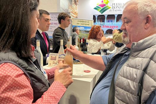 Además, en el stand de Los Pueblos Más Bonitos, coincidiendo con el Día de la Provincia de Ciudad Real, Almagro ha invitado a degustar su producto estrella, la berenjena encurtida pero también aceite y vino con sello almagreño en ambiente muy teatral como corresponde para la ocasión.
