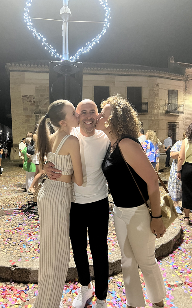 Después, la Escuela de Baile Raúl llenó la Plaza de Santo Domingo con sus coreografías y bailes en la que participaron pequeños y grandes, familias enteras, amigos… Esta plaza es una de las más bonitas de Almagro y en la noche de ayer iluminada con un gran corazón en la farola que la hace especial mostró, más si cabe, su encanto y particular belleza. A las doce en punto, además, se convirtió en el lugar más romántico de la ciudad con cientos de abrazos y besos de amor de parejas, padres con sus hijos, entre amigos, abuelos y nietos… Un momento muy especial en esta noche también muy especial.