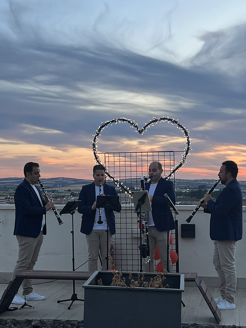 Al atardecer comenzaba esta Noche Romántica 2024 en el Mirador del Silo. El cuarteto Kairos de clarinetes envolvió este espacio singular con temas muy conocidos de películas y temas románticos que disfrutó de lo lindo el público asistente.