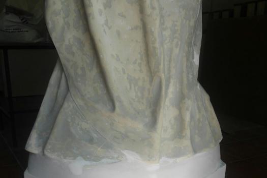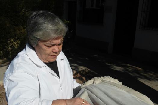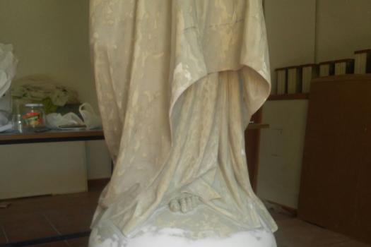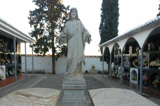 La imagen sirvió de modelo para el original que hoy se puede contemplar en el cementerio almagreño y que fue construida en escayola, como es lógico, para después ser terminada en mármol.