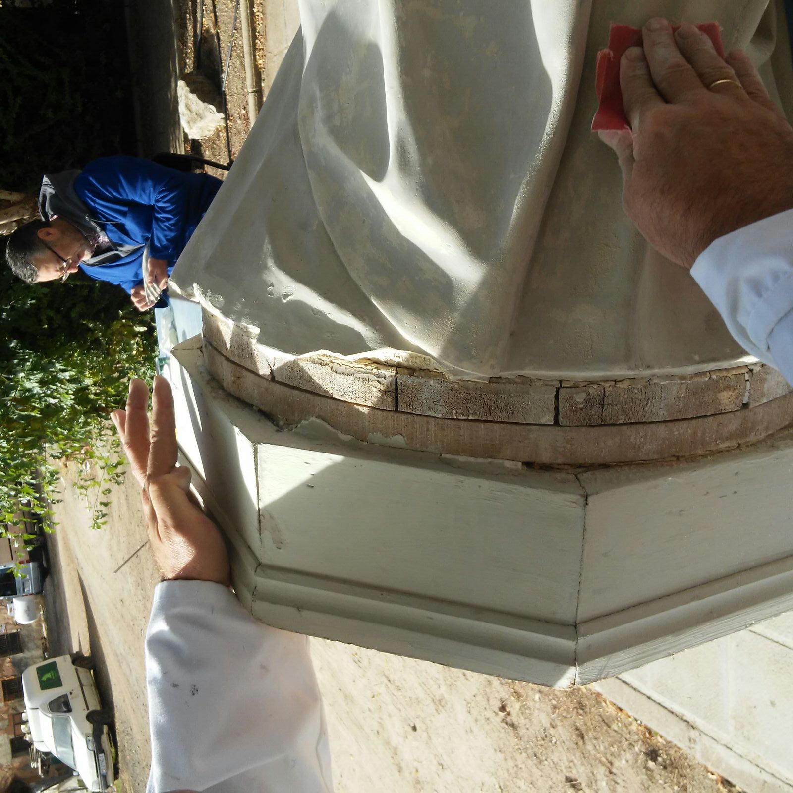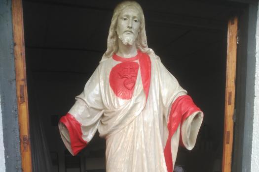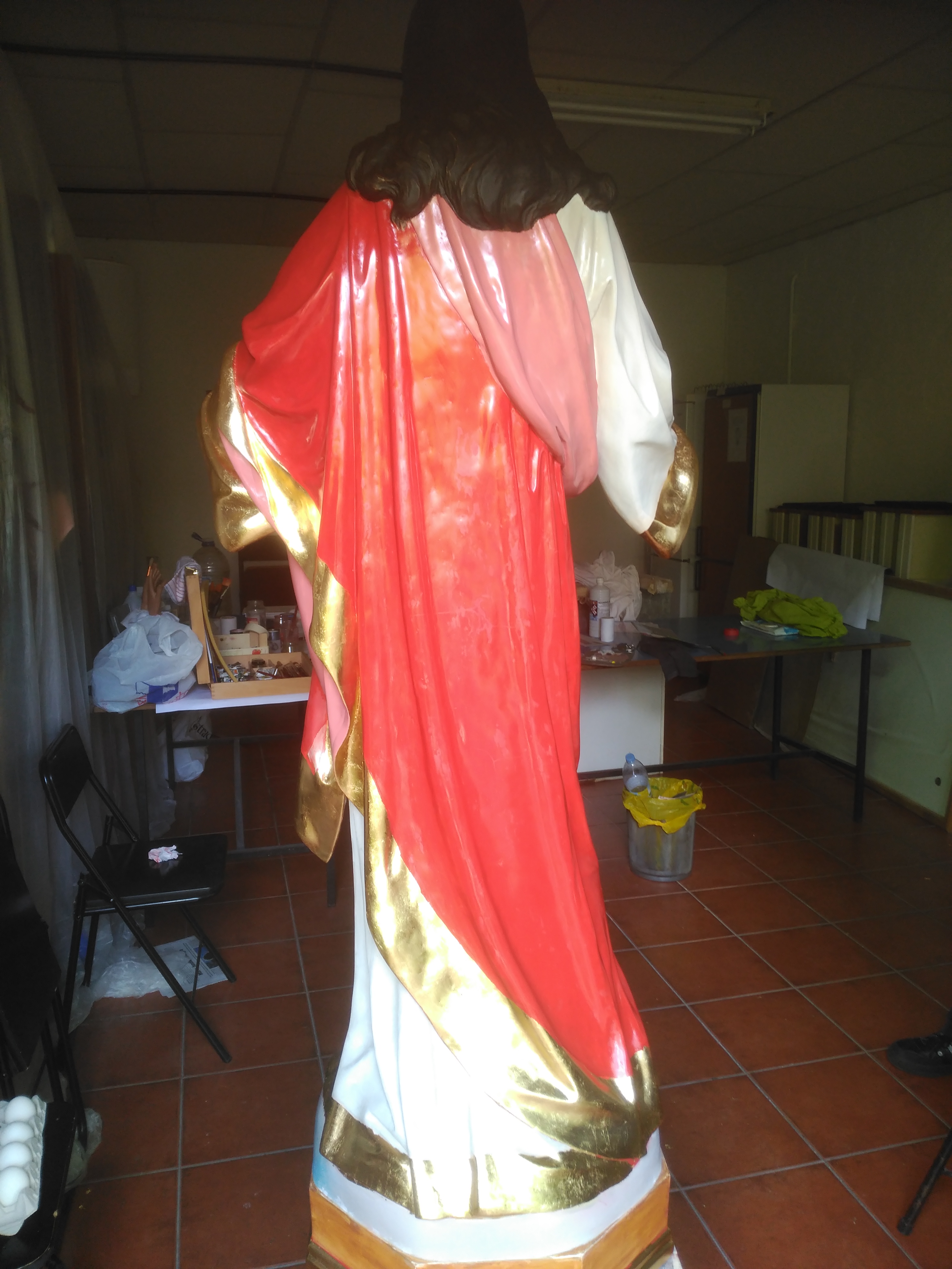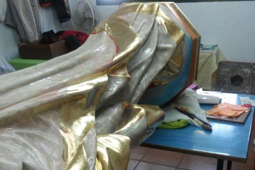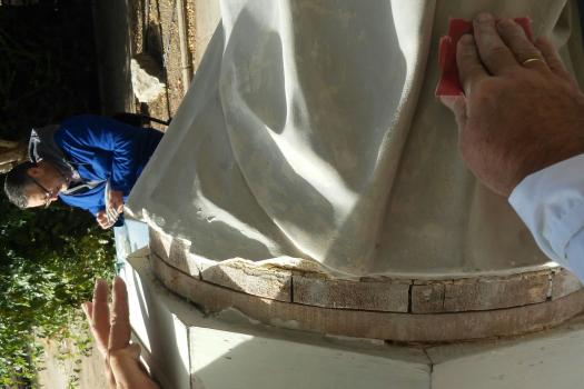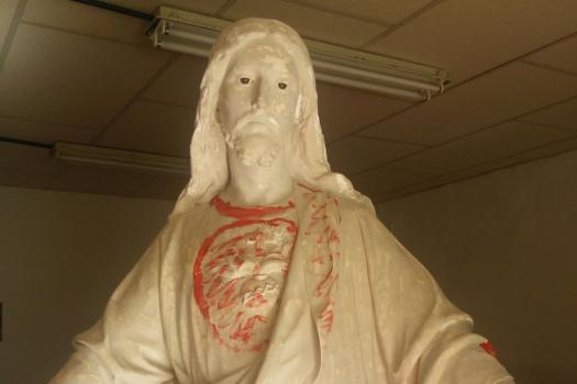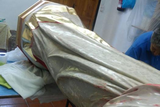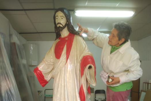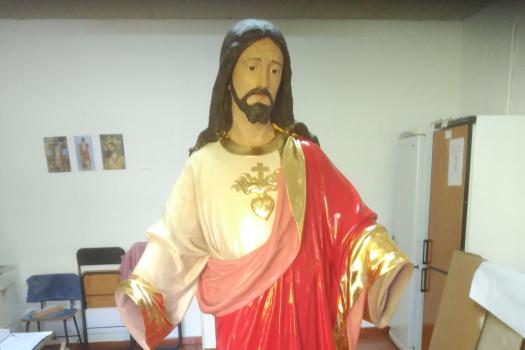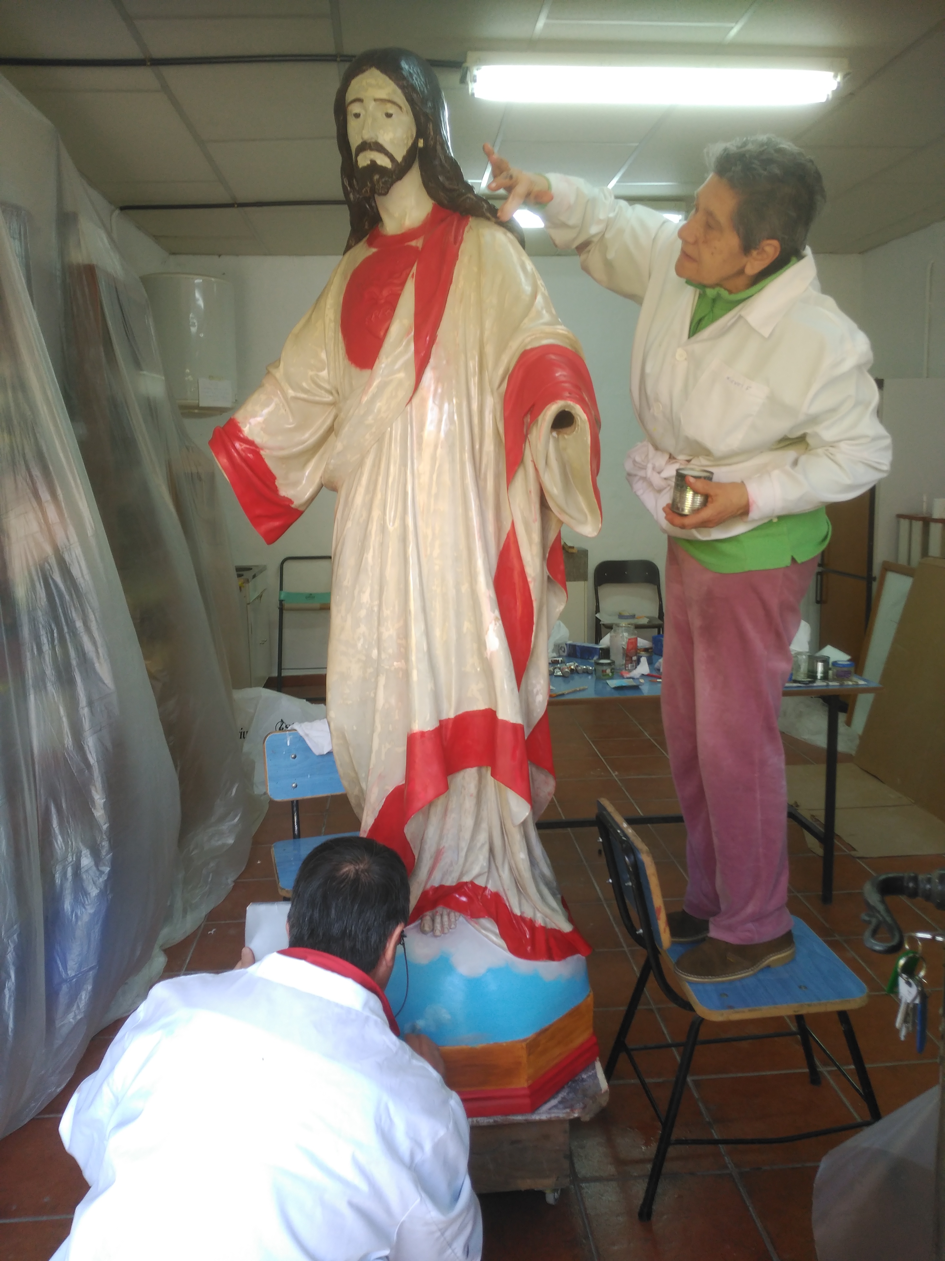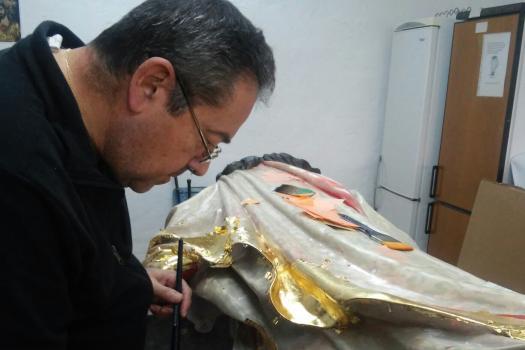 Alumnos de Restauración y Pintura de la Universidad Popular restauran la imagen del Sagrado Corazón de las monjas dominicas