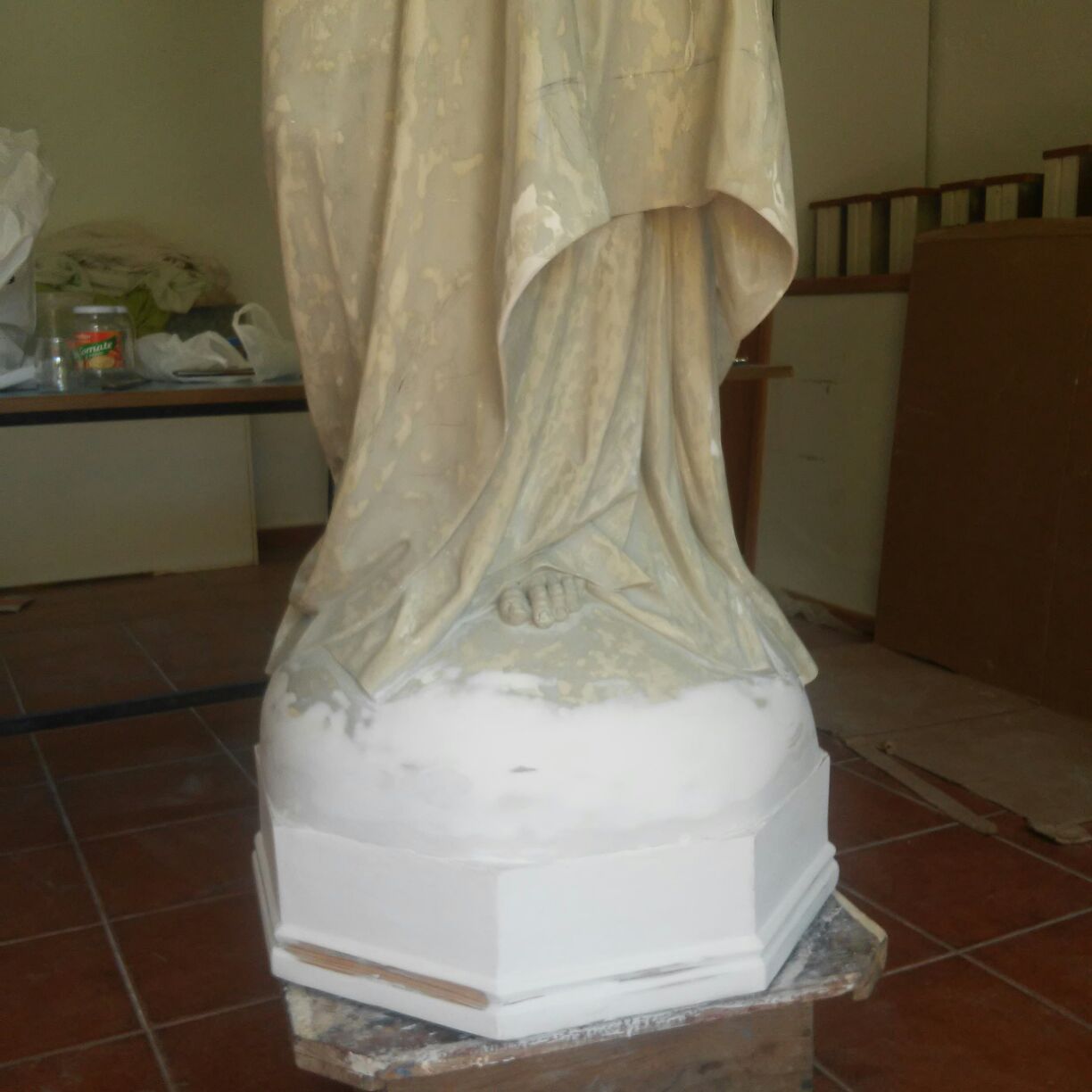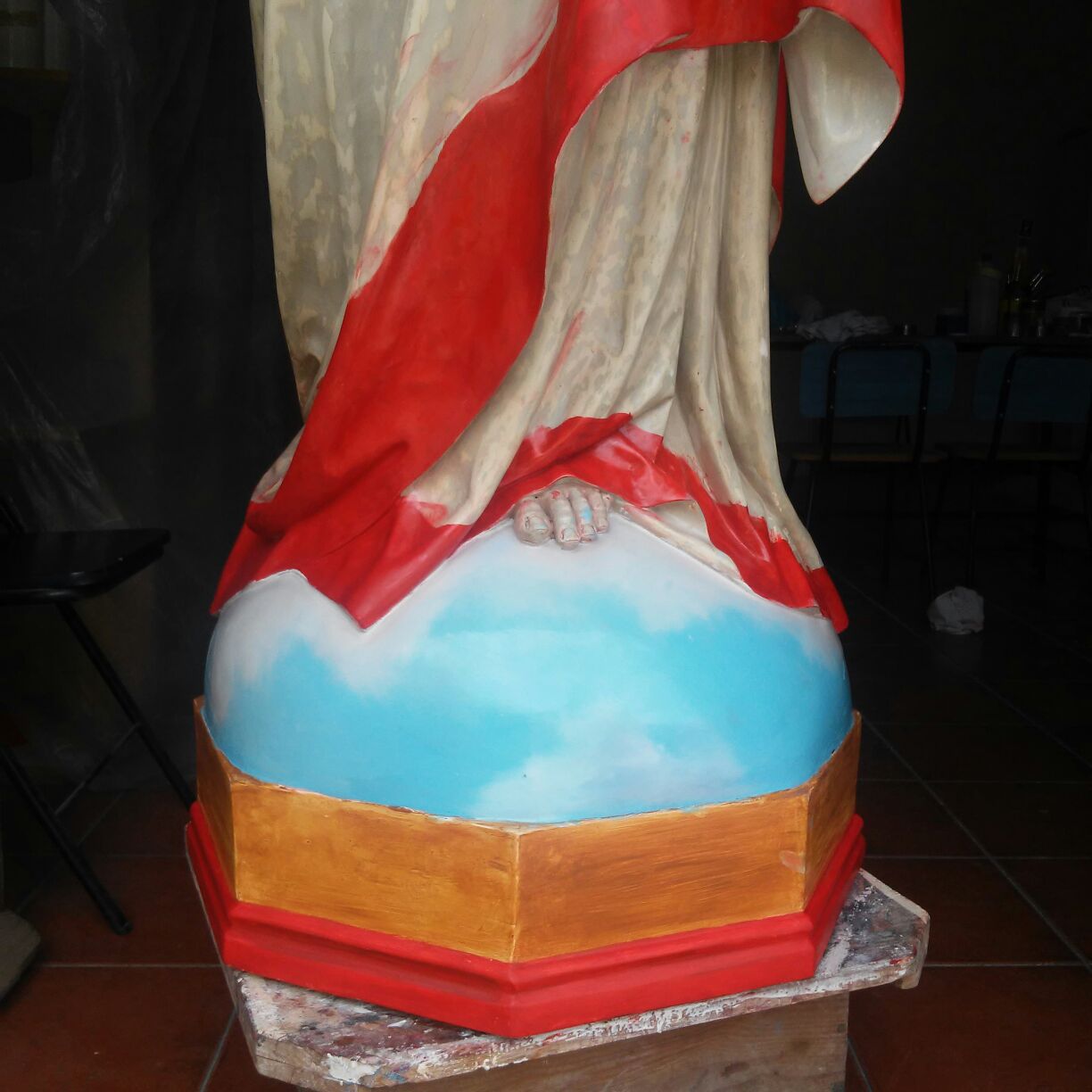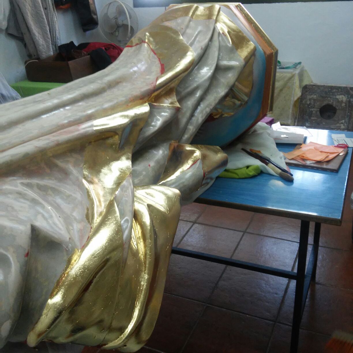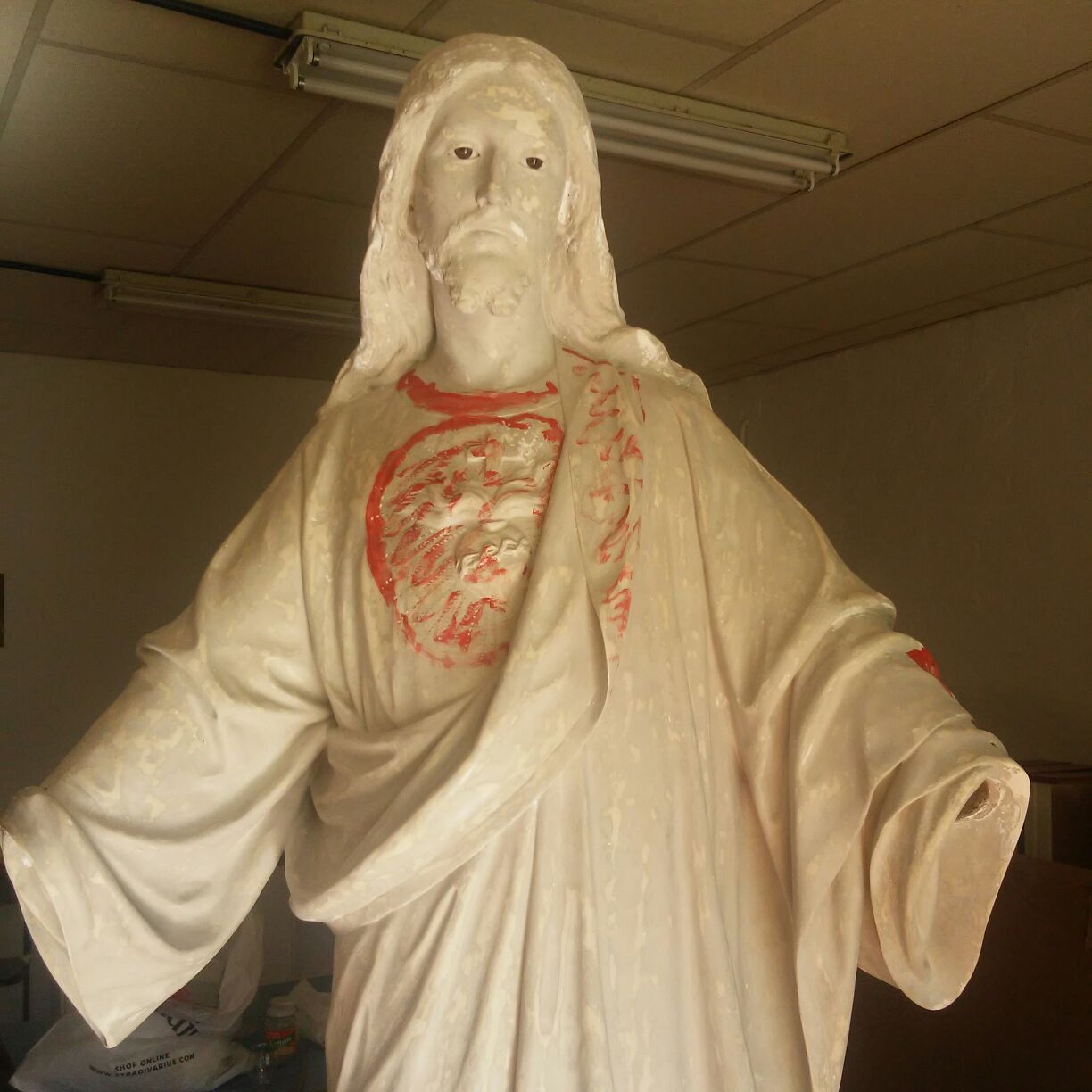 Alumnos de Restauración y Pintura de la Universidad Popular restauran la imagen del Sagrado Corazón de las monjas dominicas
