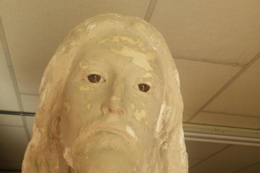 La imagen de escayola, que sirvió de molde para la escultura que preside el panteón familiar de los últimos Marqueses de Torremejía en el cementerio municipal. Se expone en la sala Jacobo Fugger, junto a los trabajos realizados, hasta el 29 de febrero.
