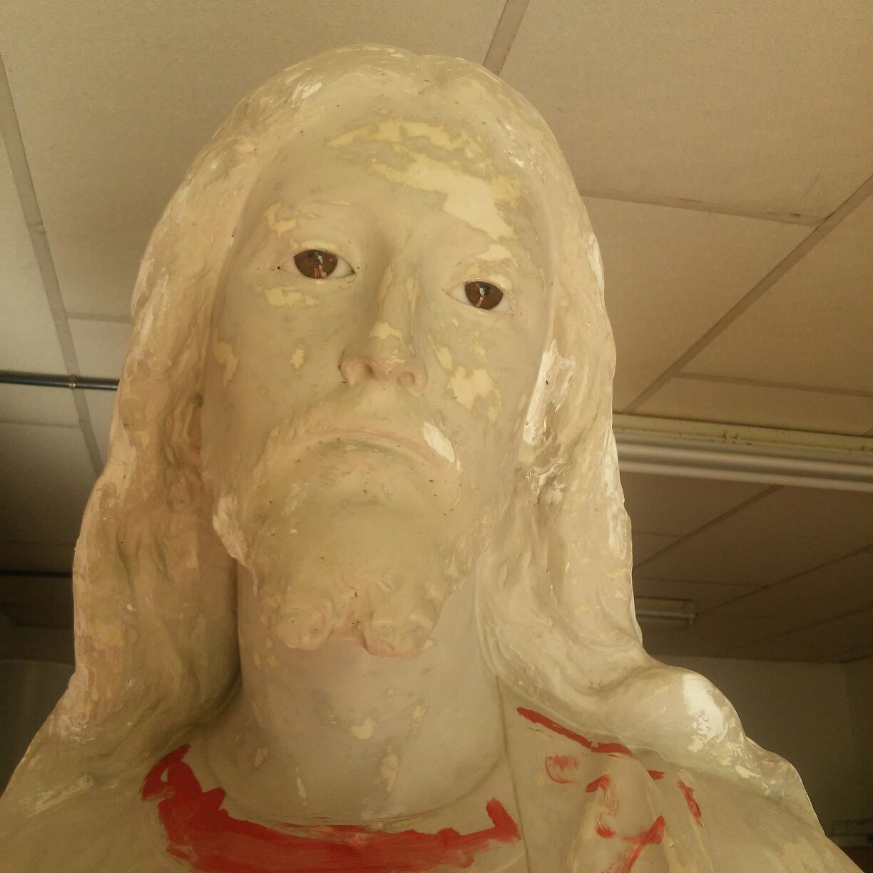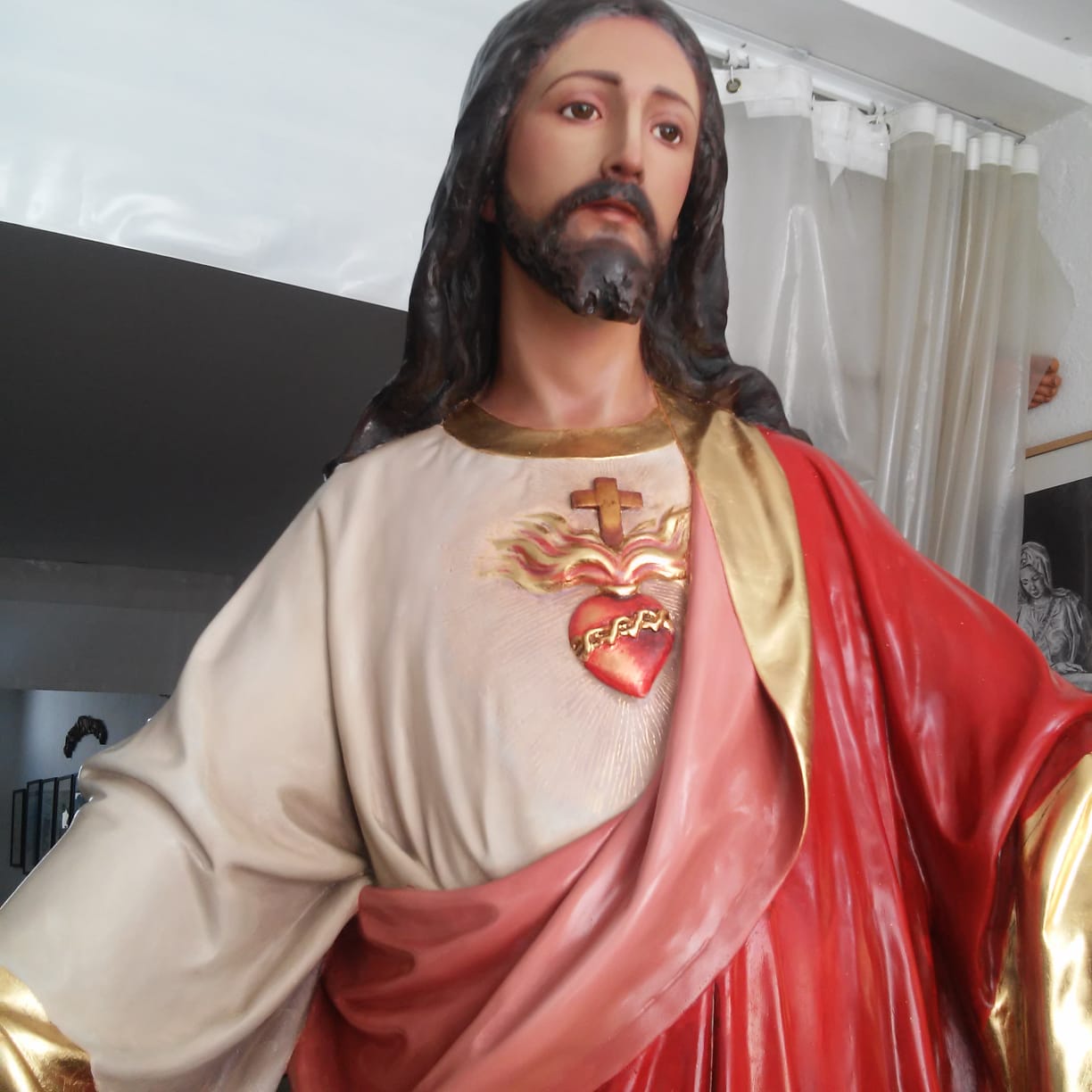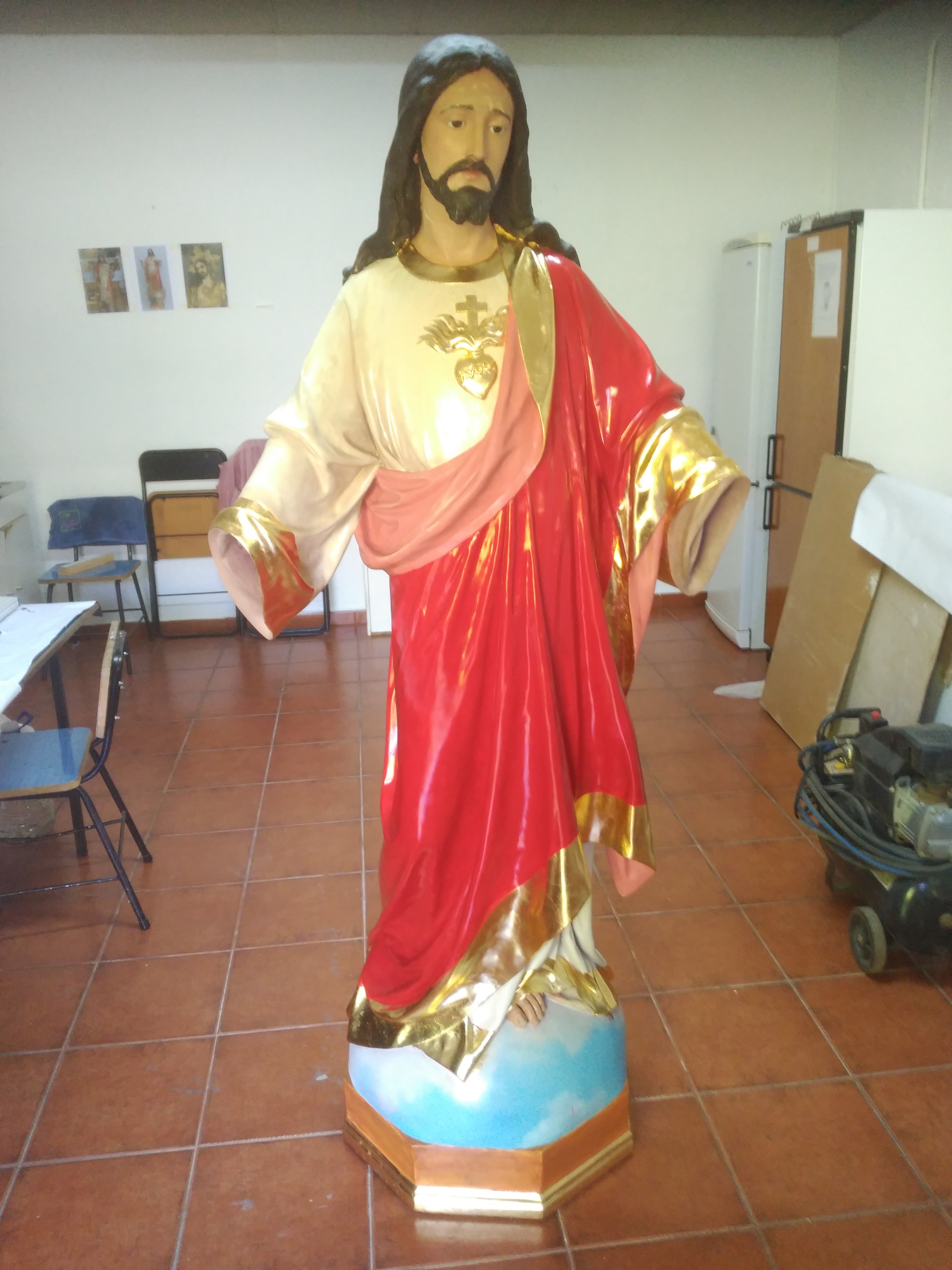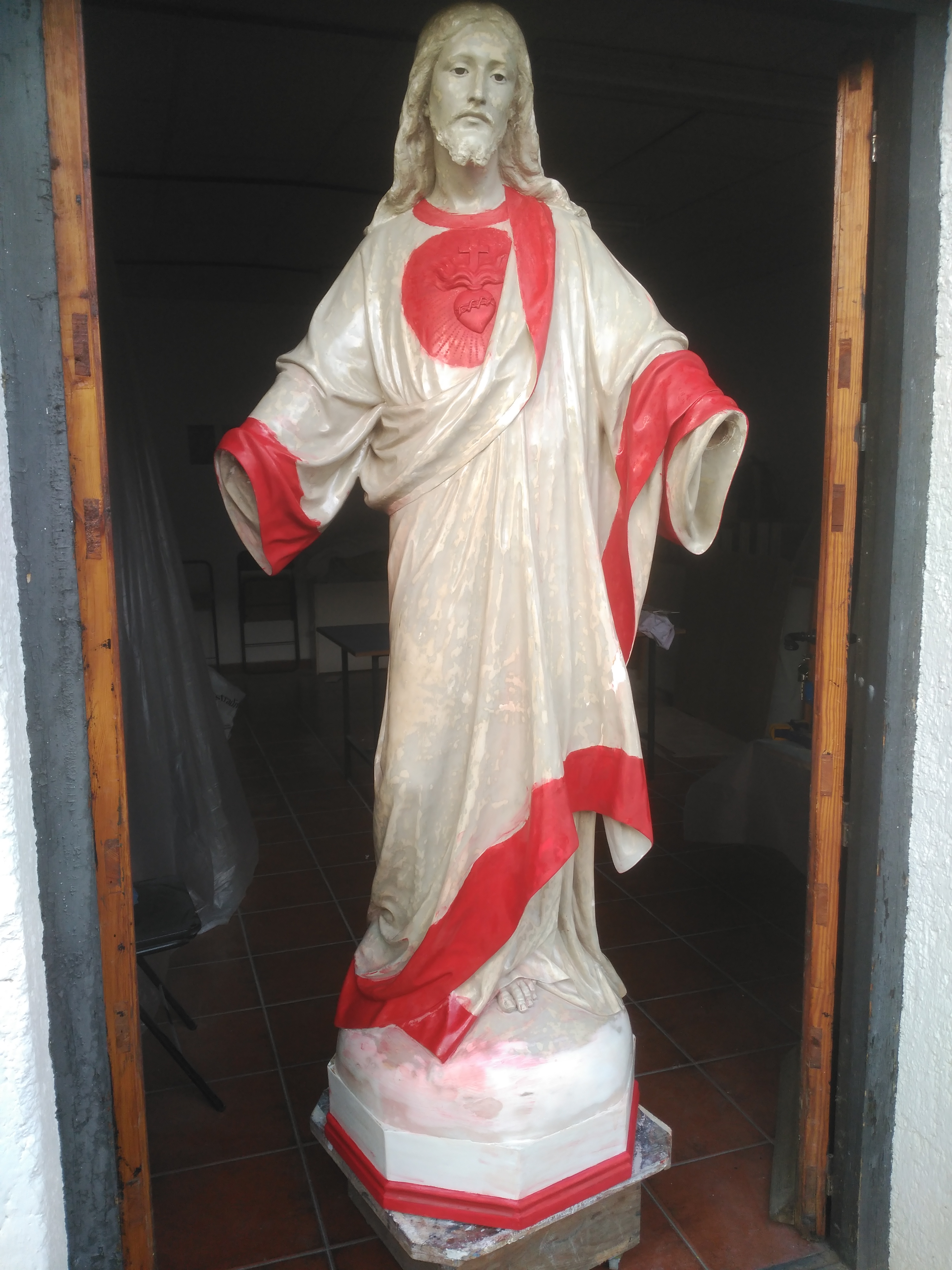 Alumnos de los talleres de Restauración y Pintura de la Universidad Popular exponen hasta el 29 de febrero sus trabajos realizados durante los últimos meses. Entre ellos, destaca la escultura a tamaño natural de un Sagrado Corazón. Se trata de una figura que las monjas dominicas de clausura tenían en uno de los soportales del patio, donada por la familia del escultor León Herrera. En diciembre de 2017, Pedro Núñez, conserje durante ese periodo de la Universidad Popular de Almagro y fontanero de las conocidas como madres de Almagro propone a las monjas que se restaure la imagen en el taller de Restauración y Pintura de la Universidad Popular de Almagro. La escultura se encontraba en muy mal estado. Deteriorada por el tiempo, le faltaban dedos, un trozo de pena y la pintura se había borrado en varias partes.