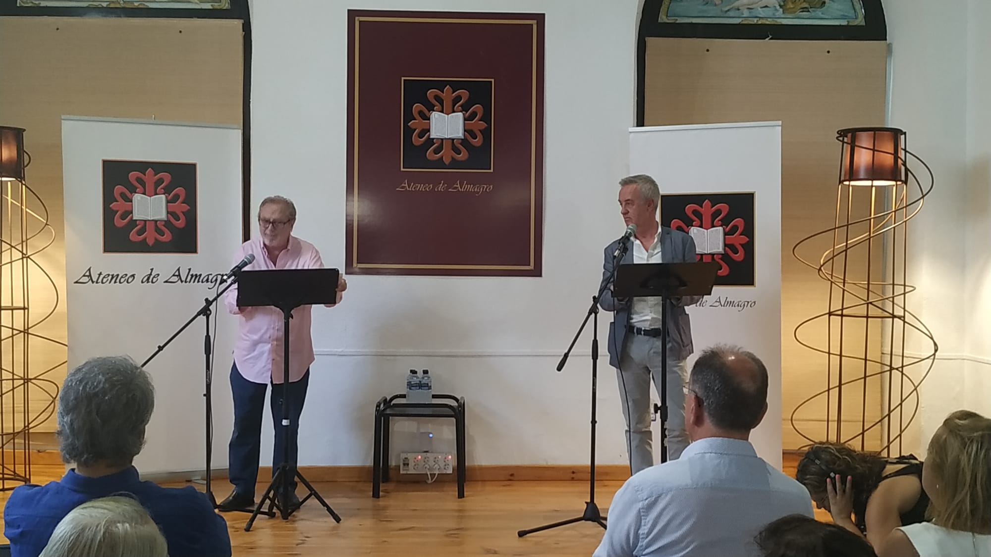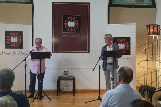 Después de unas palabras del autor, los actores de teatro y cine español Carlos Hipólito y Manuel Galiana recitaron una selección de versos de ambas obras ante un abarrotado público que se congregó en la sede del Ateneo de Almagro.