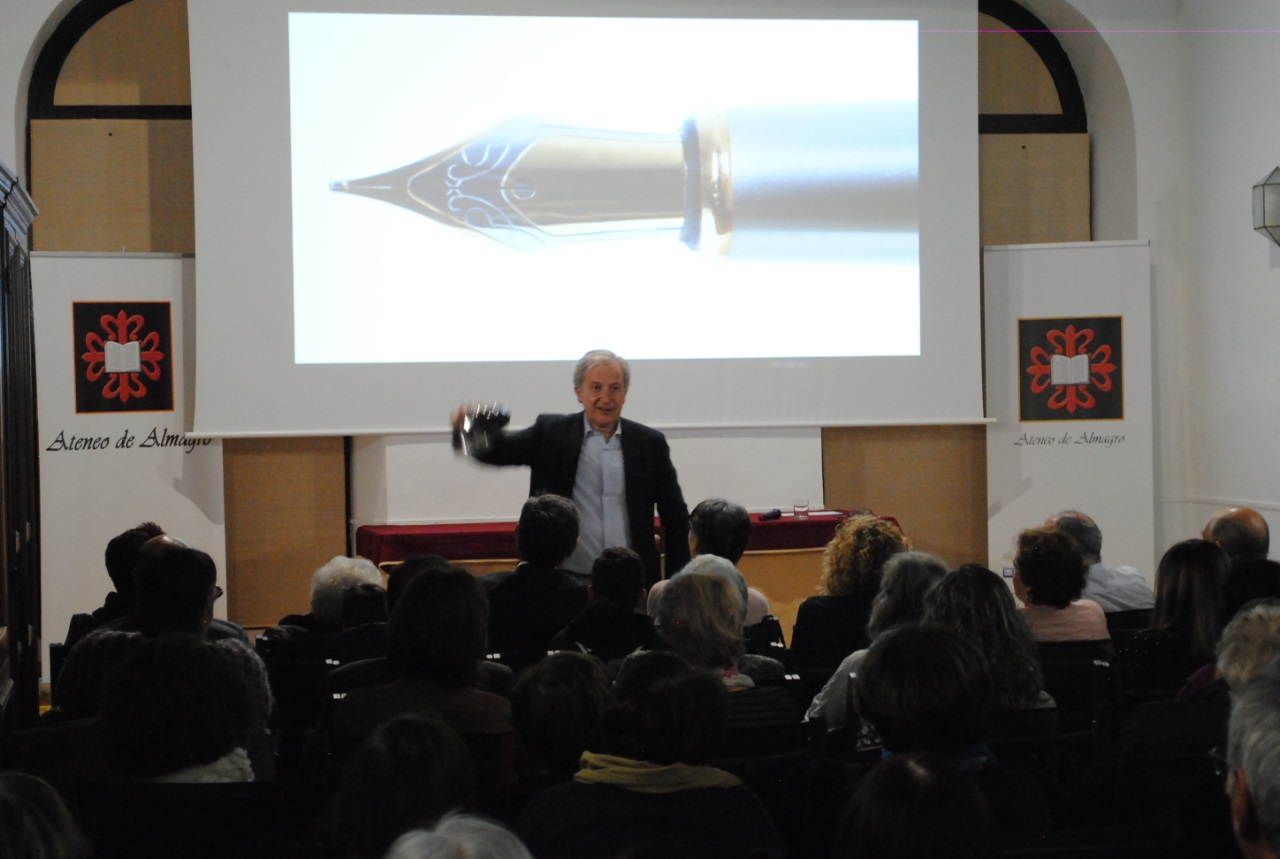 Había levantado expectación el anuncio de la presencia del filólogo latino Emilio del Río en el Ateneo de Almagro, y no era para menos. Desde luego no se equivocaron los ateneístas y amigos que abarrotaron la sede en el Palacio de los Medrano para escuchar a este comunicador nato y profundo conocedor del lenguaje. Ya lo advertía Elena Arenas, coordinadora de la sección de Literatura del Ateneo, en su presentación: «Nos va a guiar en un viaje al país de las palabras. Son las palabras las que ordenan el universo, y de eso sabe mucho Emilio del Río», advertía Elena. Y tampoco se equivocó, como quedó demostrado a lo largo de toda la velada. Nada que ver con una presentación literaria al uso. Porque en el fondo de eso se trataba, de presentar su exitoso libro Latín Lovers, que un año después de su publicación llega a su décima edición.
