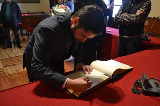 El alcalde, acompañado del concejal de Cultura, Pedro Torres y del cronista de Almagro, Arcadio Calvo, se mostró también muy contento de recibir a la familia de Carlos Sosa y a Rafael Maldonado quienes firmaron en el Libro de Honor de la ciudad. Cada uno de ellos recibió un obsequio del Ayuntamiento y la familia Sosa obsequió con cacao de Venezuela. Precisamente, la familia de Carlos Sosa se dedicó durante muchos años al cultivo de cacao. De ahí que la conferencia que impartirá este sábado lleva el título de “Huellas de azogue y chocolate”. La cita a las 12 horas en el conocido como Palacio de los Fúcares.