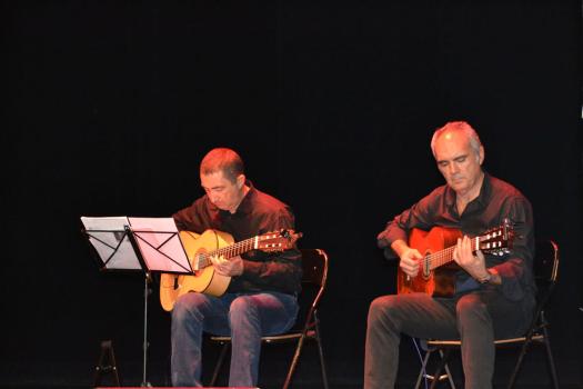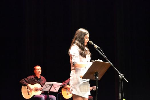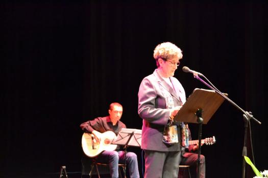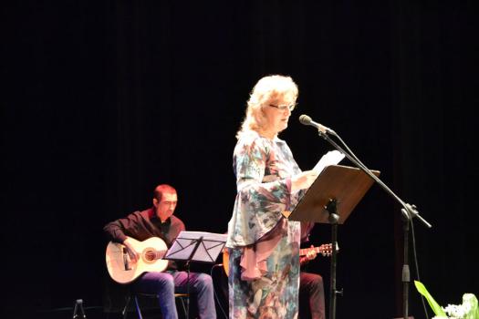 El recital poético, que finalizó con la entrega de claves rojos para los asistentes, contó con la colaboración de los músicos a la guitarra Carmelo Rodríguez y Rafael García, miembros del grupo Classroom.
