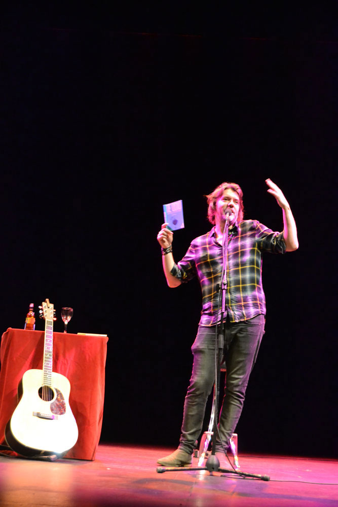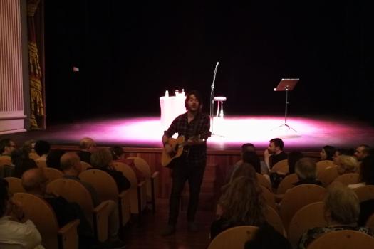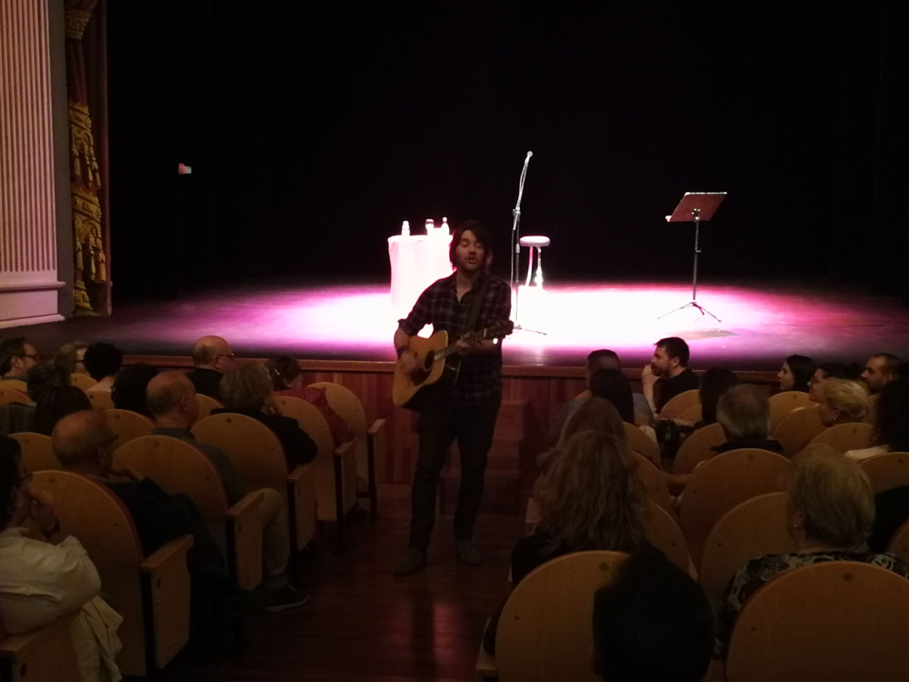 En la noche de este pasado viernes, algo de todo esto se produjo. El público que casi lleno el Teatro Principal, y que llegó con ganas de disfrutar de su poesía y su canción, eso fue lo hizo: disfrutar de cada canción y de cada poema que el artista recitaba. Sobre todo, al público más joven, que bien conocía al nominado a un premio Grammy Latino en 2009 y por el premio Guille de salas madrileñas como mejor cantautor los dos sucesivos años.