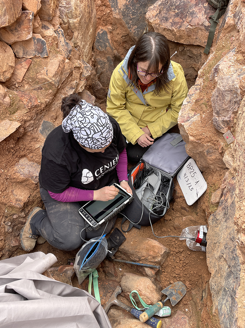 Entre las principales novedades de la próxima campaña se encuentra la realización de nuevas dataciones mediante radiocarbono (C14) y luminiscencia ópticamente estimulada (OSL). Las especialistas del Centro Nacional de Investigación sobre la Evolución Humana (CENIEH), Alicia Medialdea Utande e Isabel Sarró Moreno, han recogido sobre el terreno muestras para medir la espectrometría gamma del yacimiento, con el objetivo de datar el monumento a través de técnicas de luminiscencia.