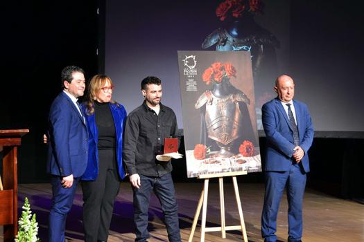 La Asociación para el Desarrollo (AD) del Campo de Calatrava desveló en la noche de ayer, sábado, en la Casa de la Música de Aldea del Rey el cartel de la Ruta de la Pasión Calatrava 2024, en un acto institucional. El cartel “Armadura, claveles, monedas y mantillas”, de Pablo Caballero, anunciará la primera Ruta, camino de su internacionalización.