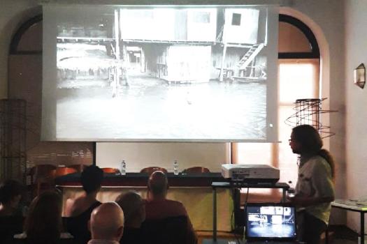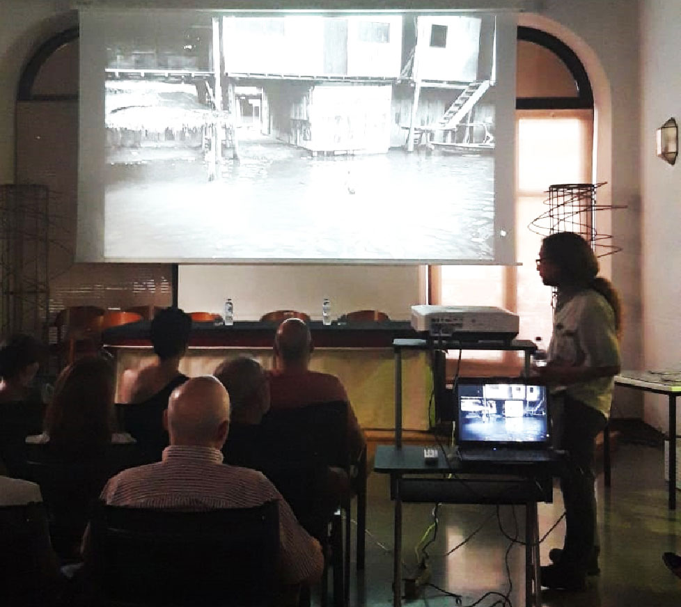 Durante una hora y media se proyectaron bellísimas imágenes de sus trabajos, fundamentalmente de Guadianas, con fotografías de paisajes, gentes, pueblos, oficios perdidos y retratos que muestran de una manera muy emocional cómo la vida ha girado alrededor de este río desde su nacimiento hasta su desembocadura. Fue una maravillosa exposición visual de una obra magnífica. Miguel Barba presentó al protagonista, y José Antonio Prieto, presidente del Ateneo, dio la bienvenida a este acto enmarcado en una intensa programación de julio, de Festival.