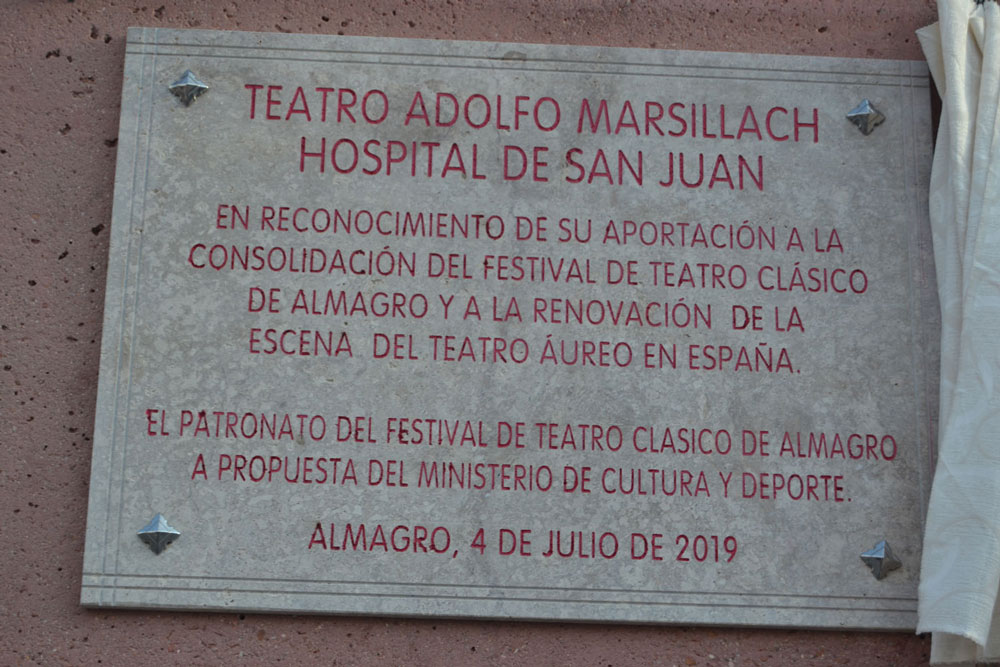 Con el descubrimiento de esta placa y el cambio de nombre del Hospital de San Juan que ahora es Teatro Adolfo Marsillach. Hospital de San Juan, Almagro rinde homenaje a uno de los directores de escena más valorados de toda España tras su fallecimiento hace 17 años.