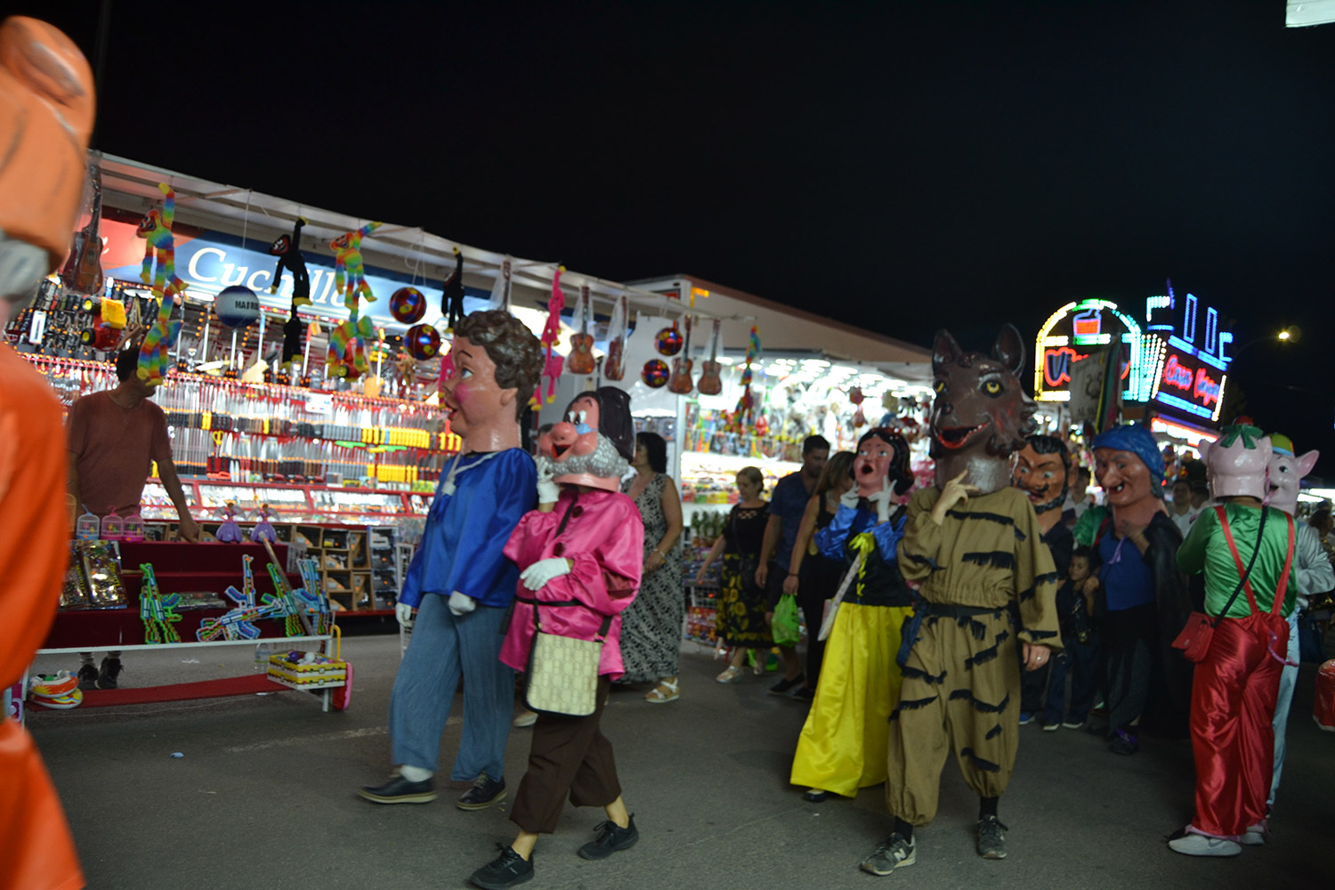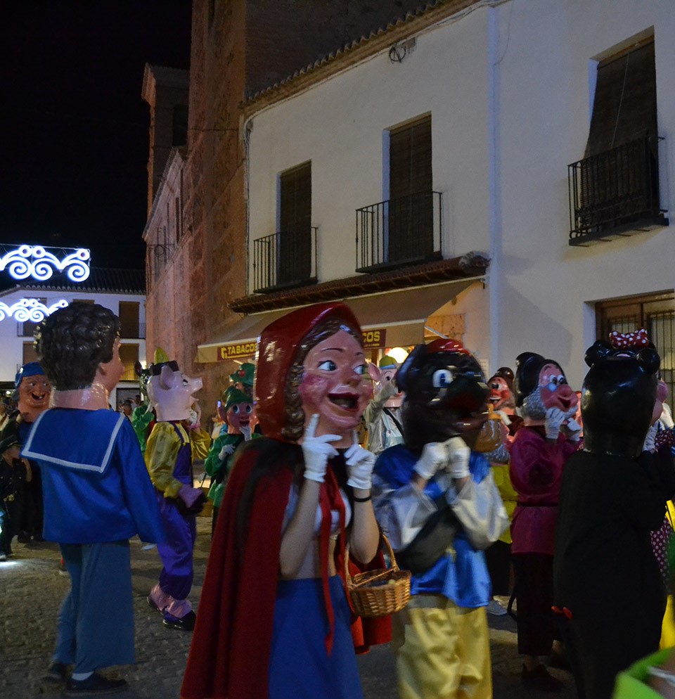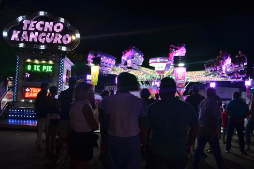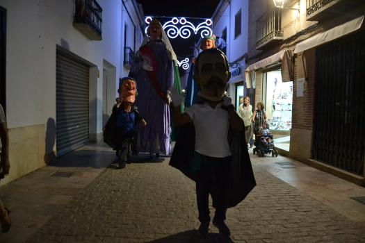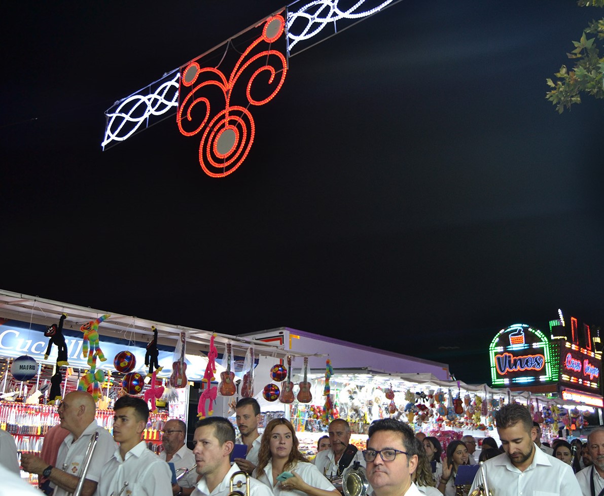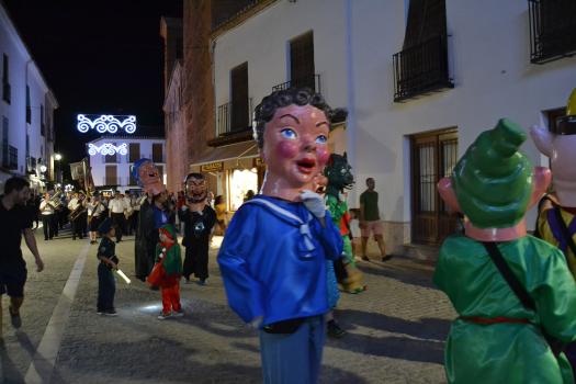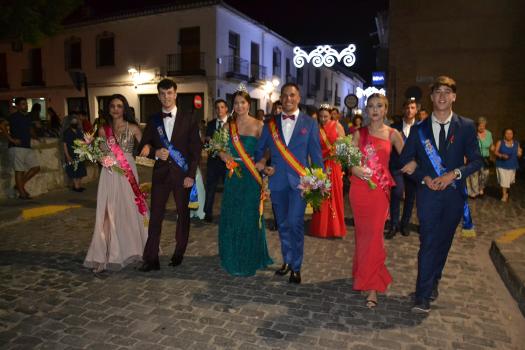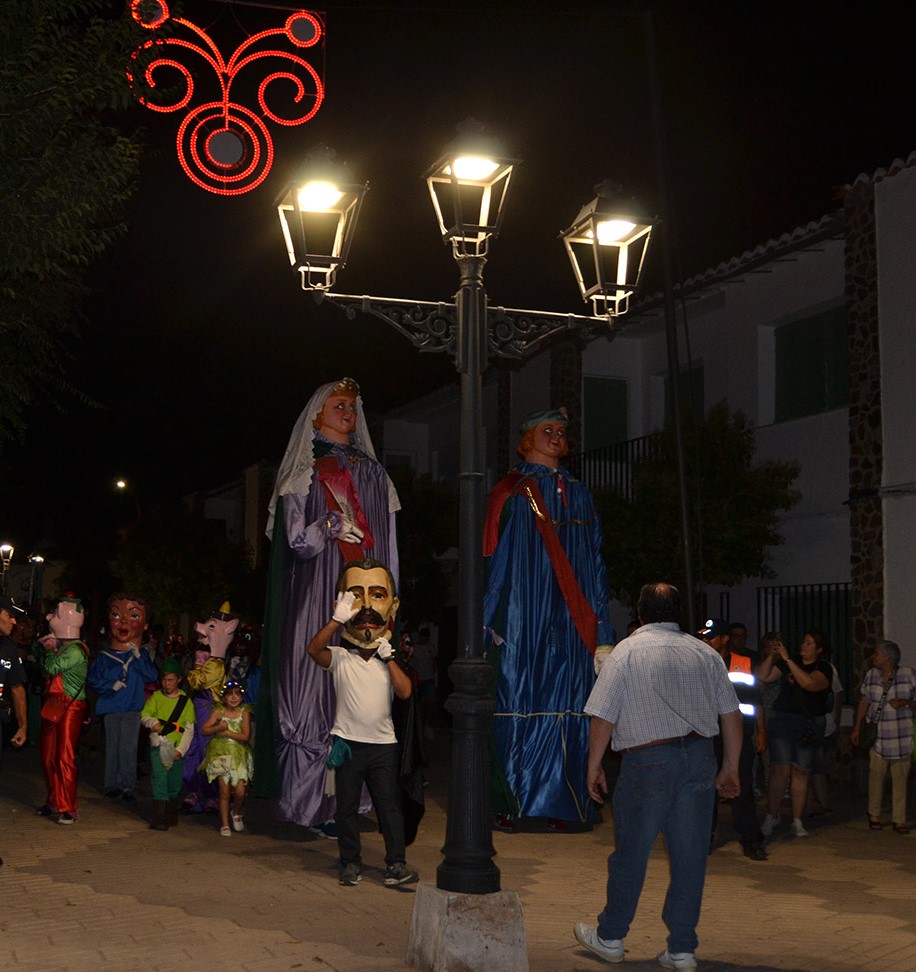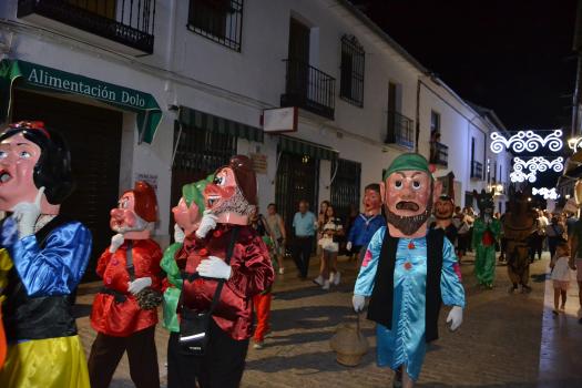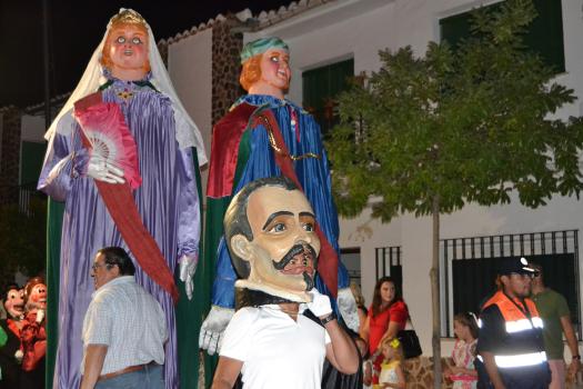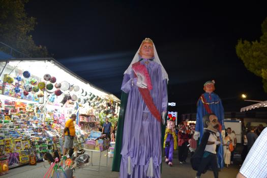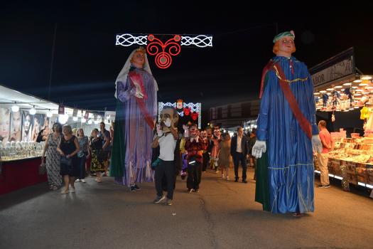El primer acto oficial de la Feria dio paso al desfile de gigantes y cabezudos, que acompañaron a la comitiva de Reina, damas y zagales, autoridades locales y provinciales y a los muchos vecinos, sobre todo niños, que no quisieron perderse el desfile hasta el recinto ferial. En su arco de entrada, la Reina cortó la cinta inaugural y con ello, el encendido de luces y los fuegos artificiales.