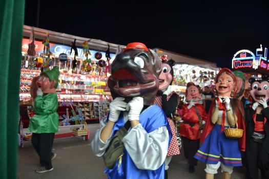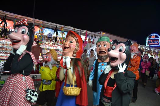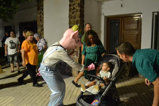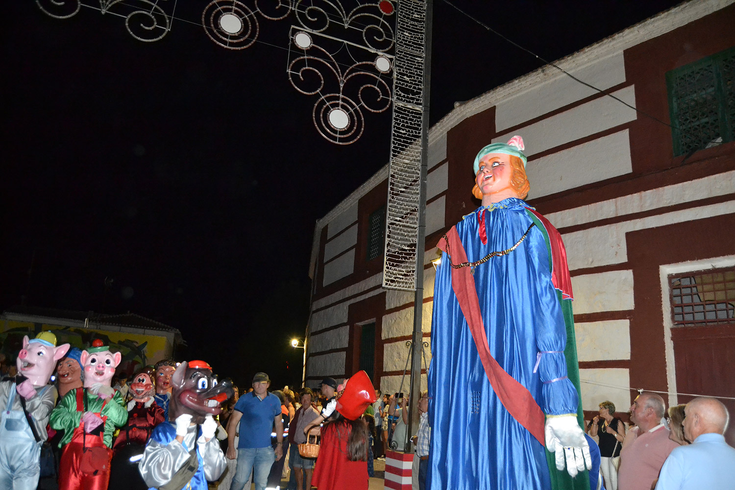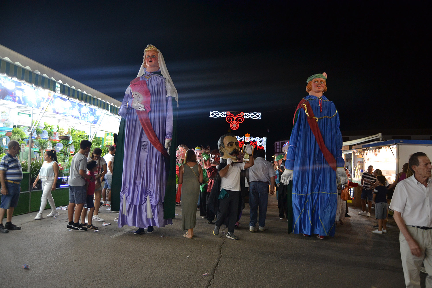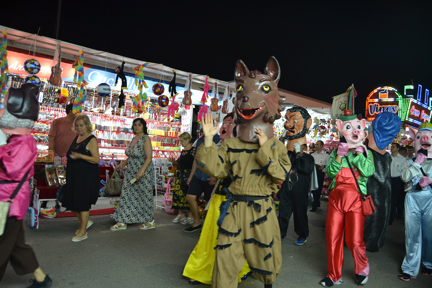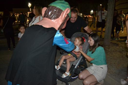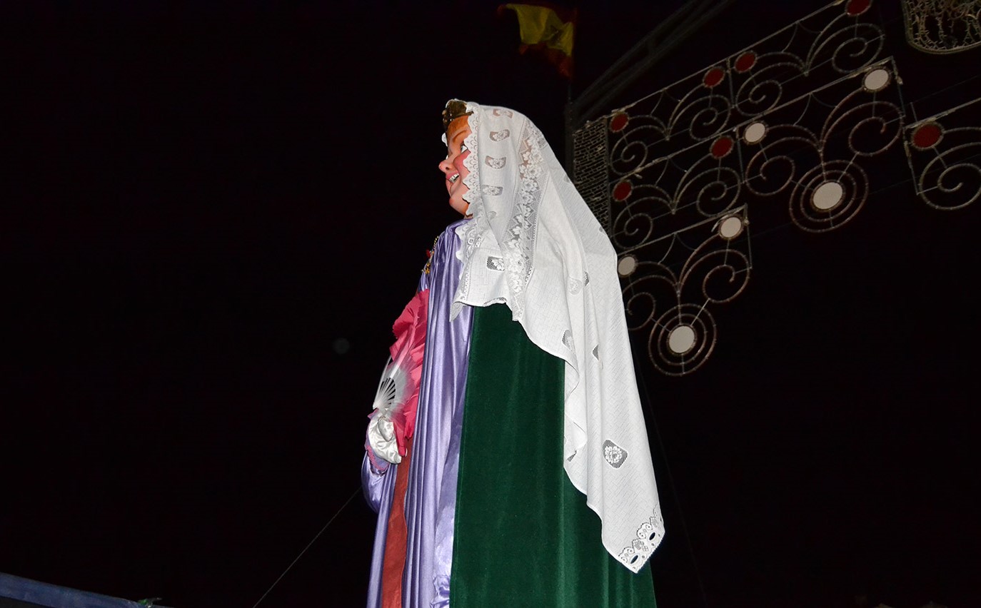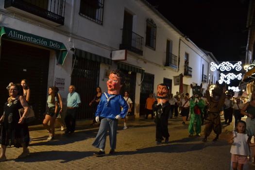 El primer acto oficial de la Feria dio paso al desfile de gigantes y cabezudos, que acompañaron a la comitiva de Reina, damas y zagales, autoridades locales y provinciales y a los muchos vecinos, sobre todo niños, que no quisieron perderse el desfile hasta el recinto ferial. En su arco de entrada, la Reina cortó la cinta inaugural y con ello, el encendido de luces y los fuegos artificiales.