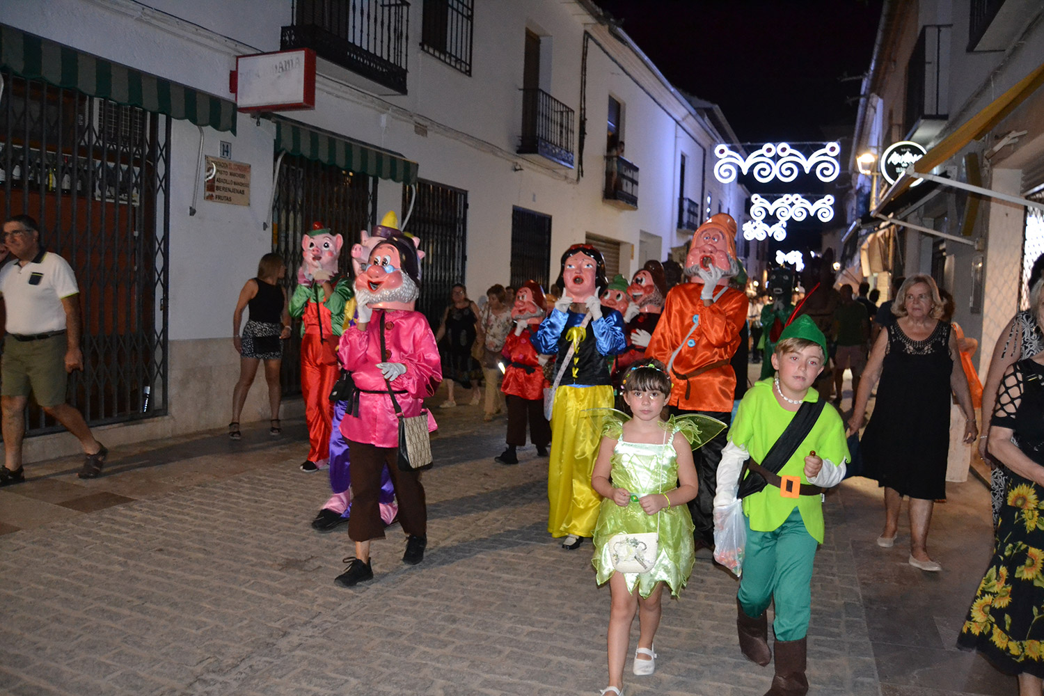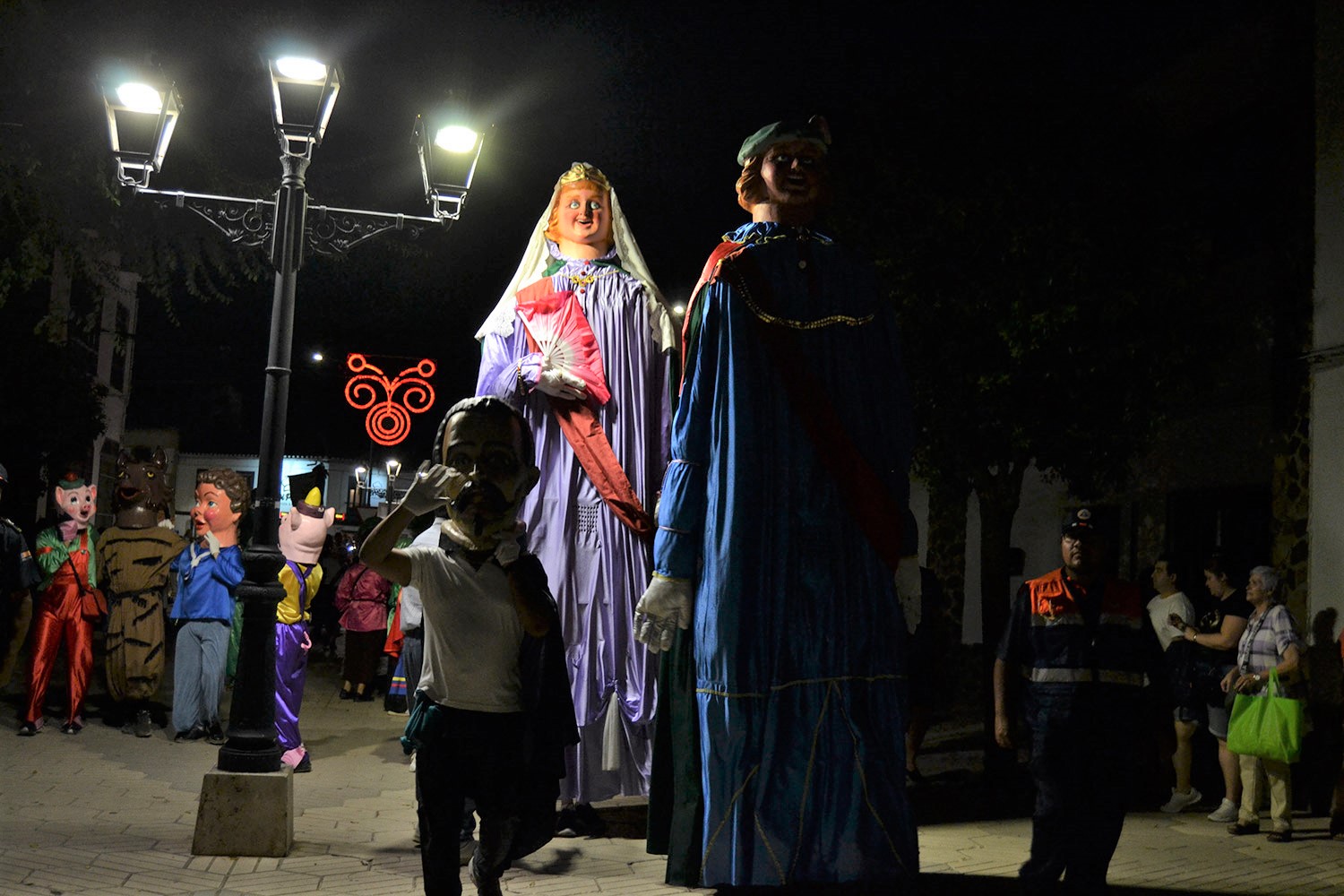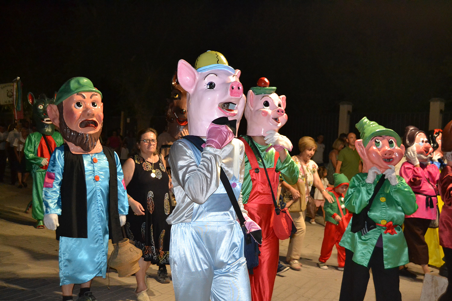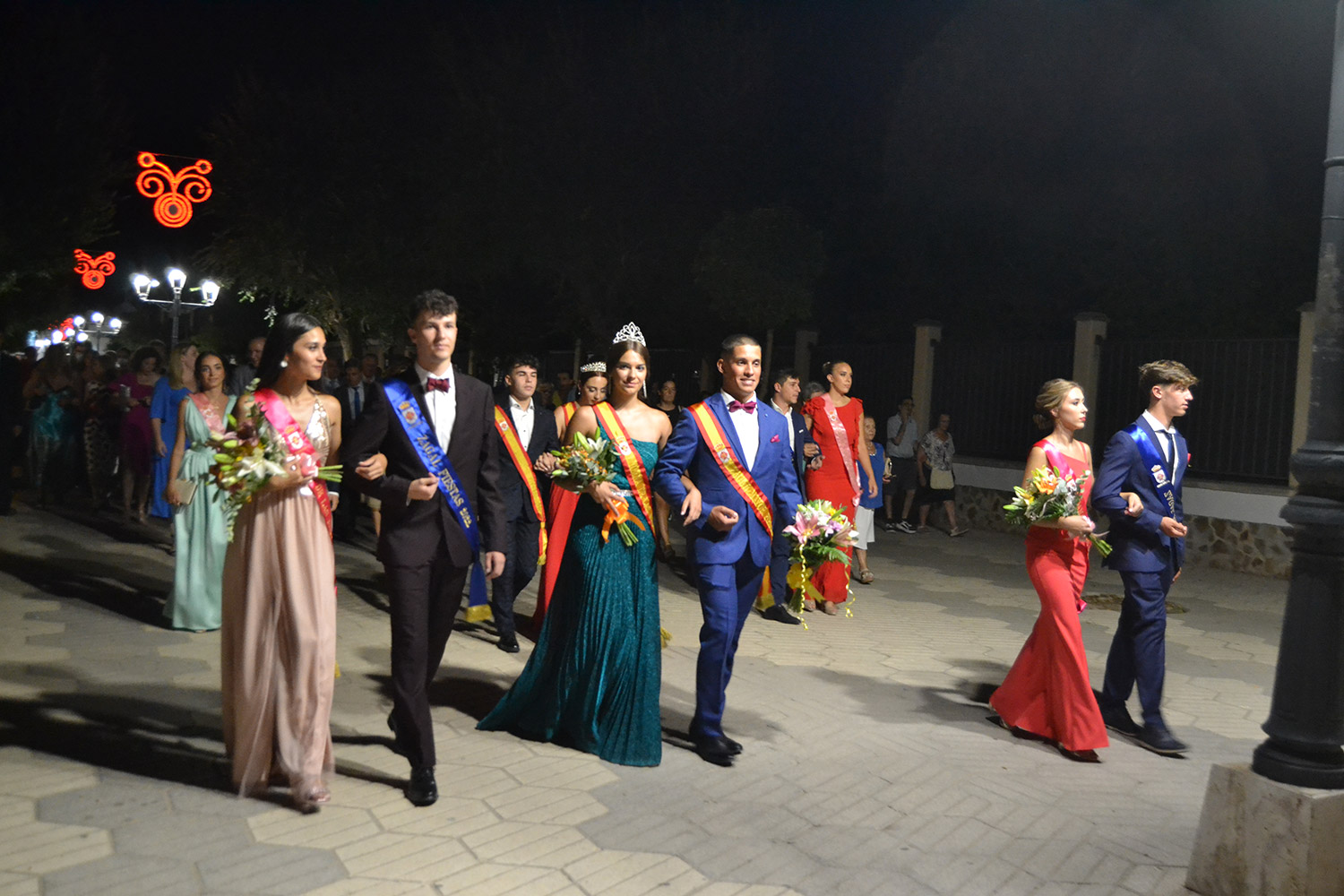El primer acto oficial de la Feria dio paso al desfile de gigantes y cabezudos, que acompañaron a la comitiva de Reina, damas y zagales, autoridades locales y provinciales y a los muchos vecinos, sobre todo niños, que no quisieron perderse el desfile hasta el recinto ferial. En su arco de entrada, la Reina cortó la cinta inaugural y con ello, el encendido de luces y los fuegos artificiales.