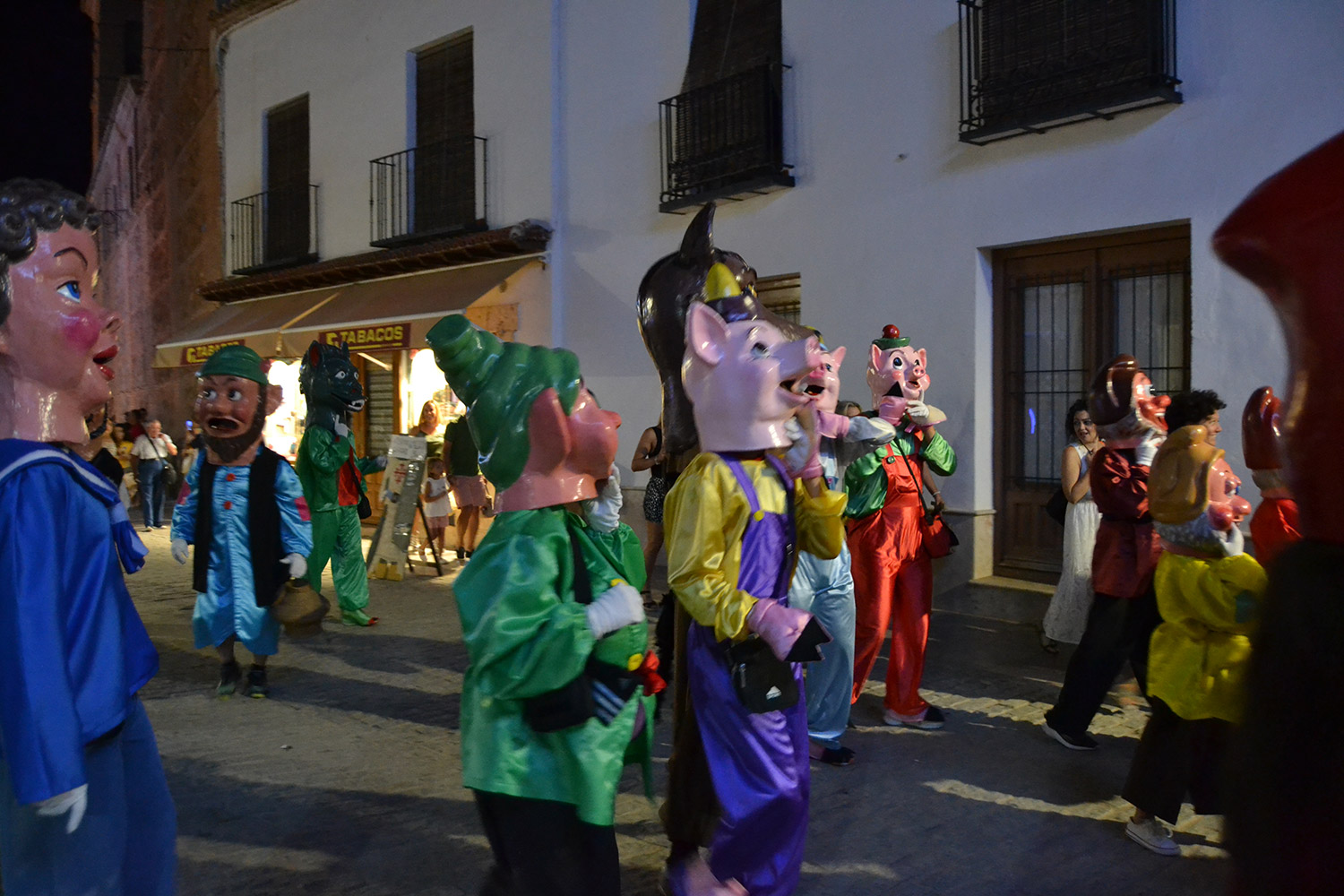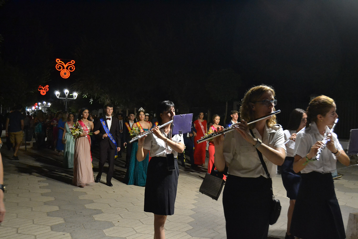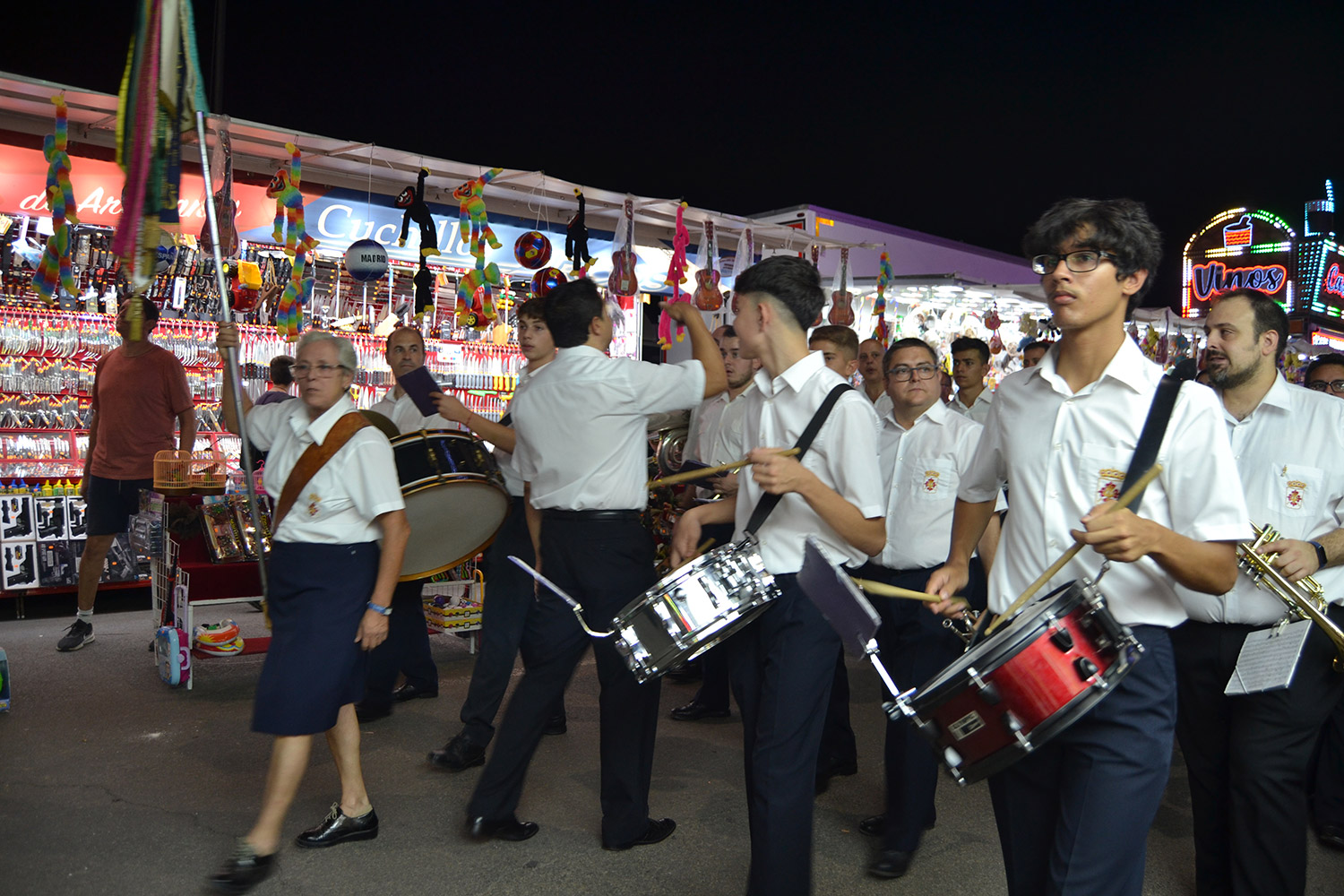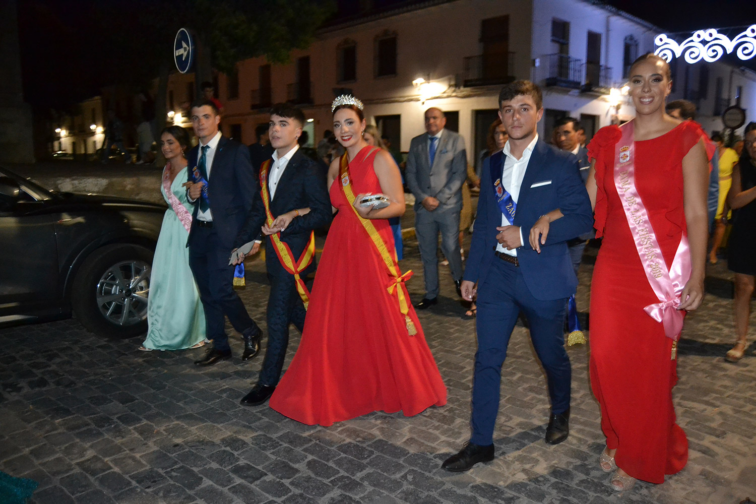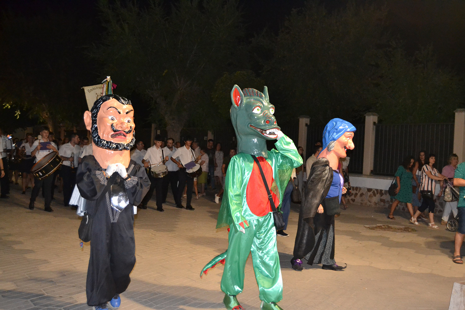 El primer acto oficial de la Feria dio paso al desfile de gigantes y cabezudos, que acompañaron a la comitiva de Reina, damas y zagales, autoridades locales y provinciales y a los muchos vecinos, sobre todo niños, que no quisieron perderse el desfile hasta el recinto ferial. En su arco de entrada, la Reina cortó la cinta inaugural y con ello, el encendido de luces y los fuegos artificiales.
