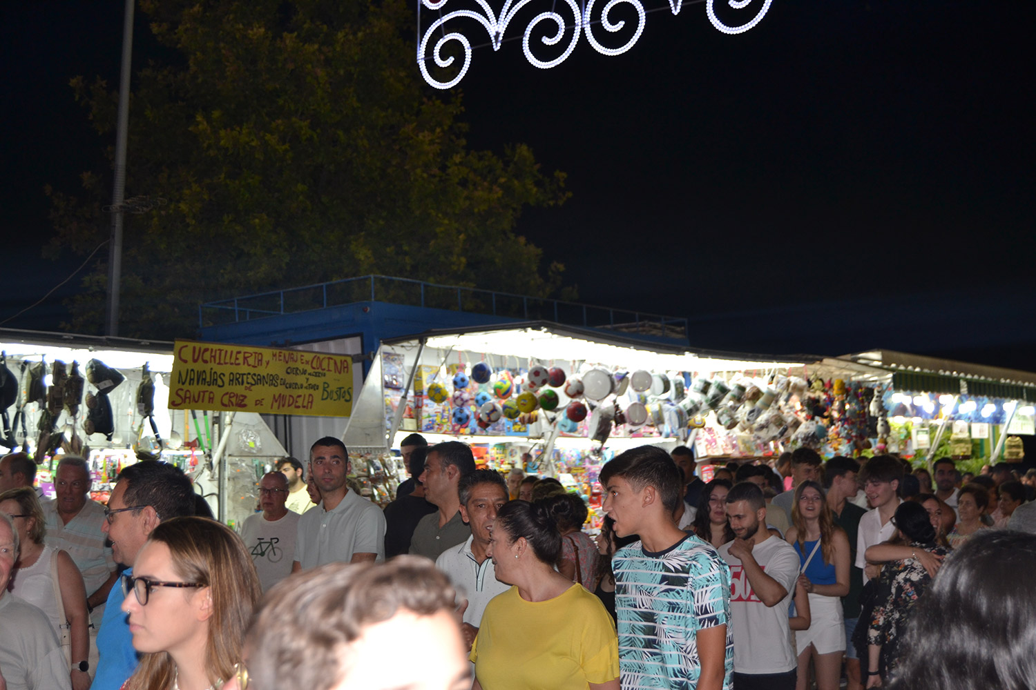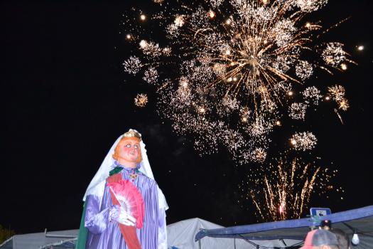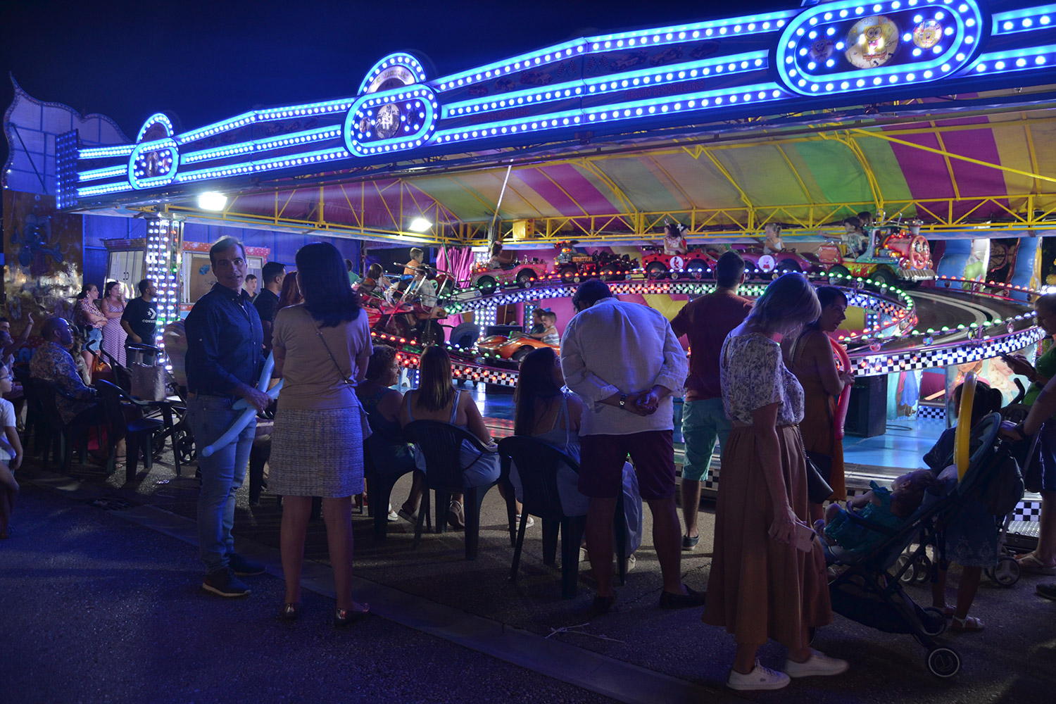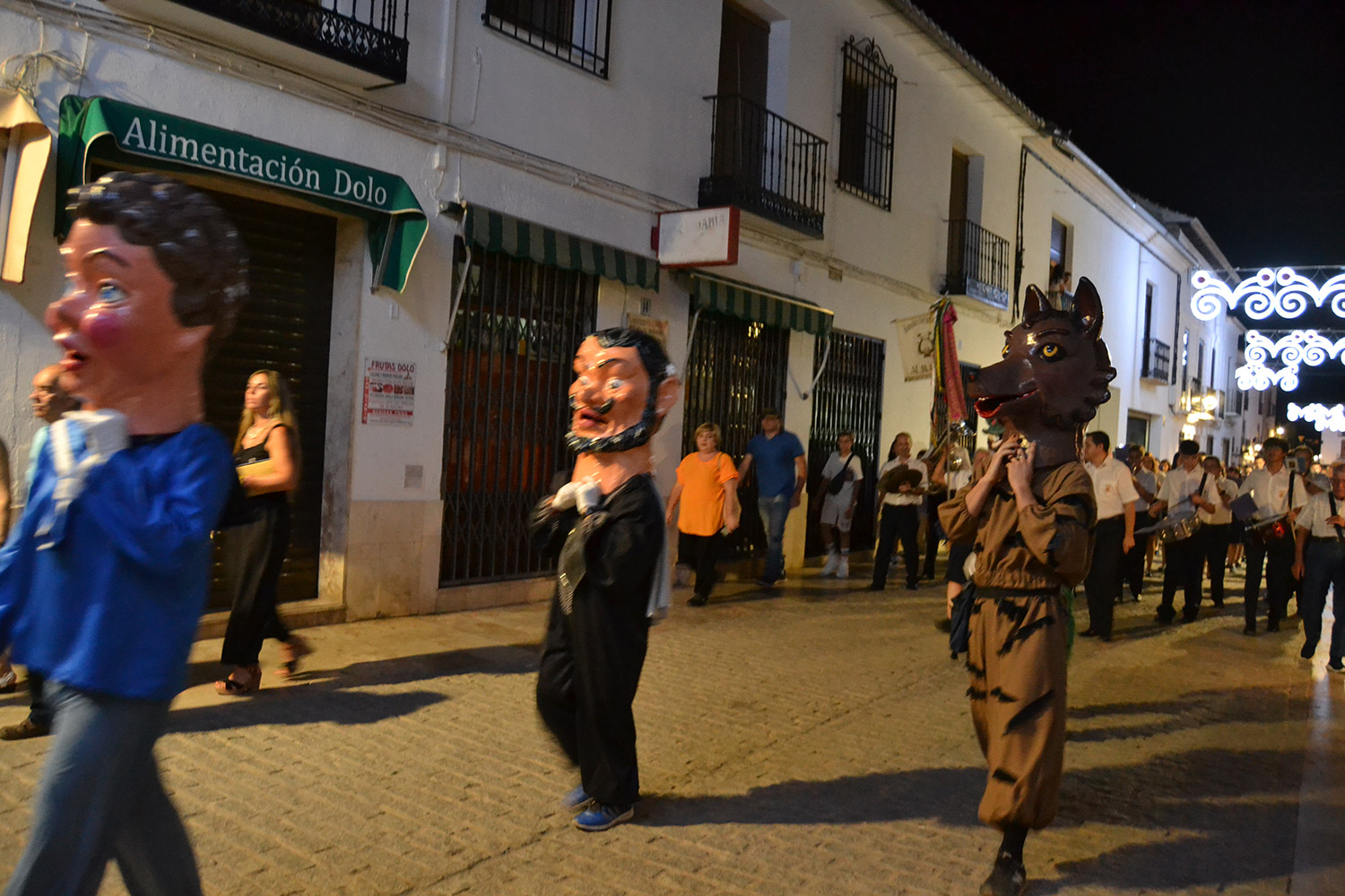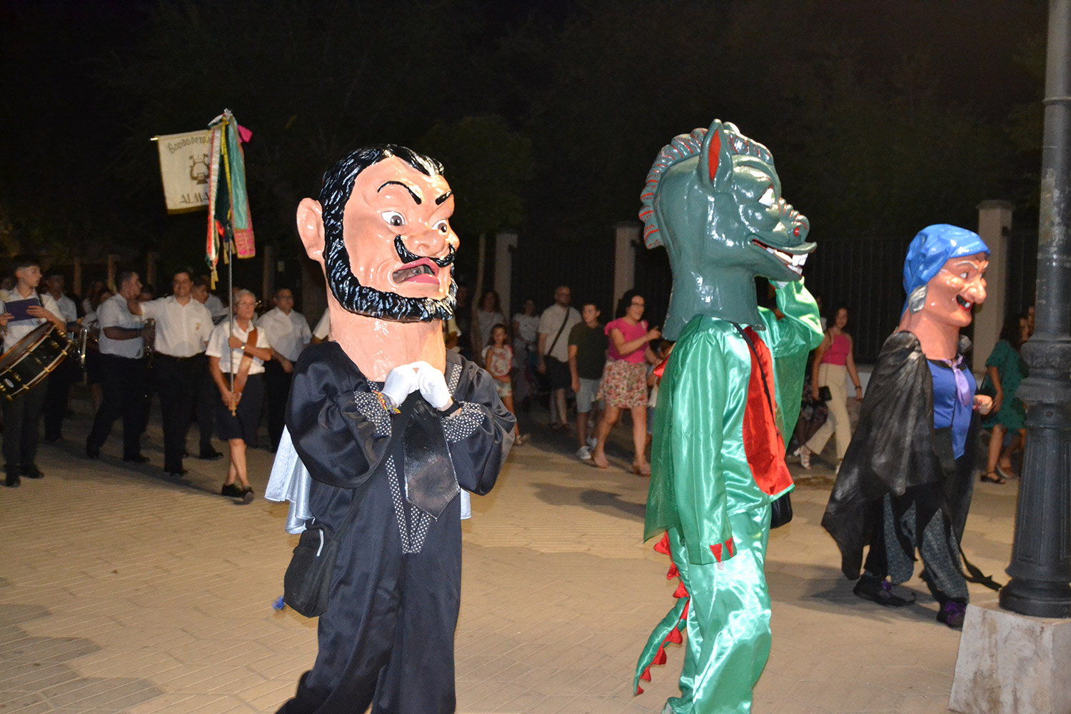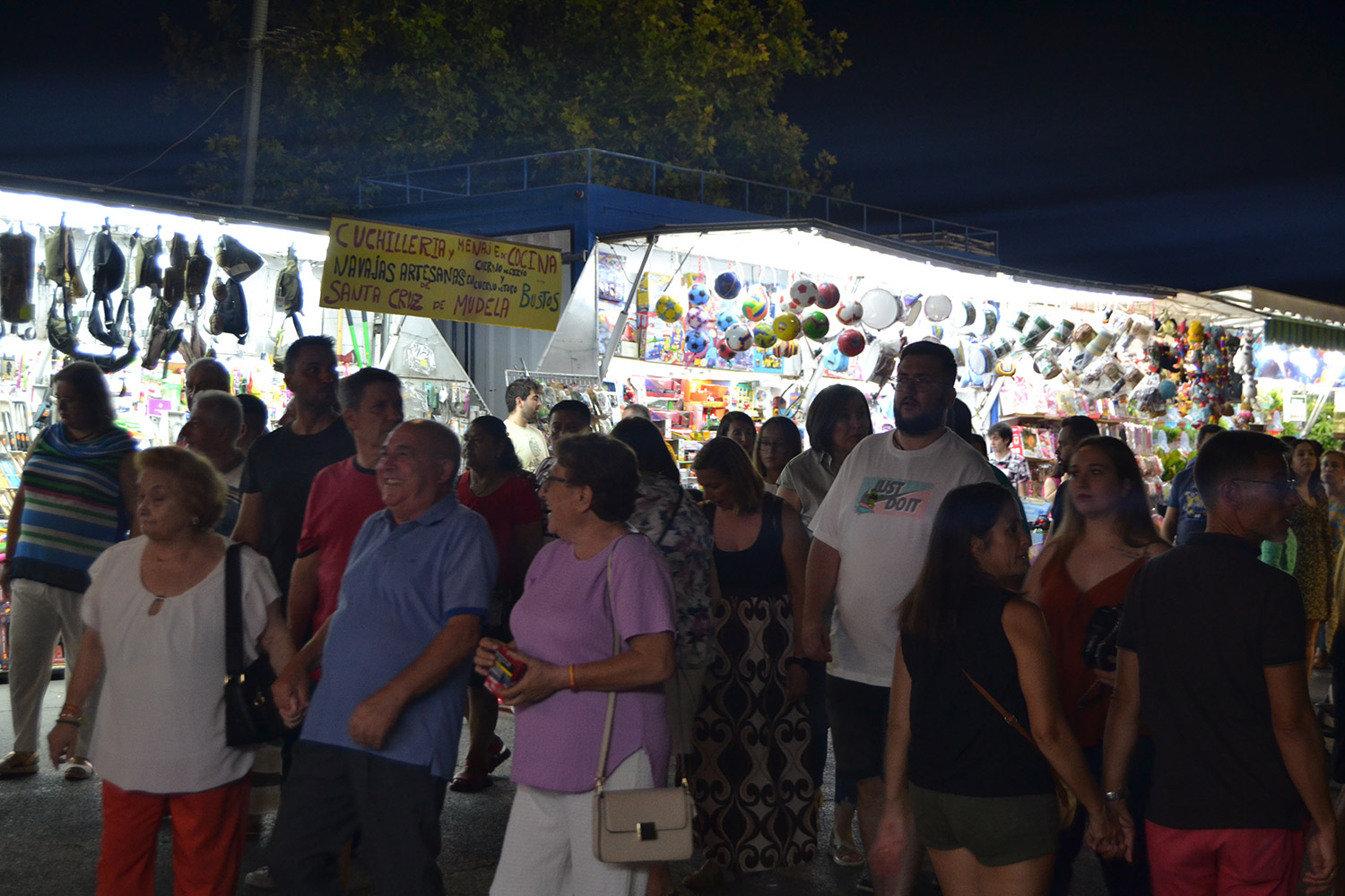 El primer acto oficial de la Feria dio paso al desfile de gigantes y cabezudos, que acompañaron a la comitiva de Reina, damas y zagales, autoridades locales y provinciales y a los muchos vecinos, sobre todo niños, que no quisieron perderse el desfile hasta el recinto ferial. En su arco de entrada, la Reina cortó la cinta inaugural y con ello, el encendido de luces y los fuegos artificiales.
