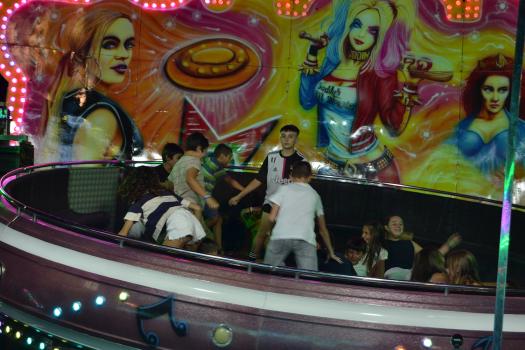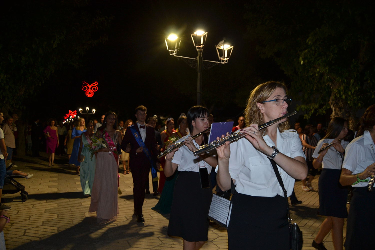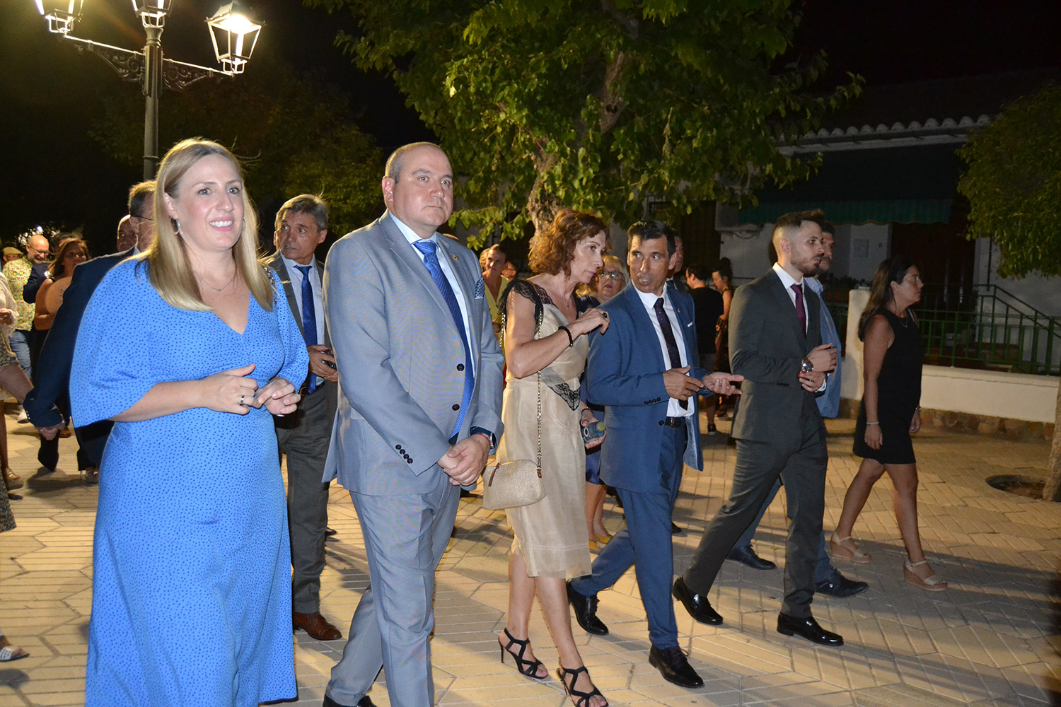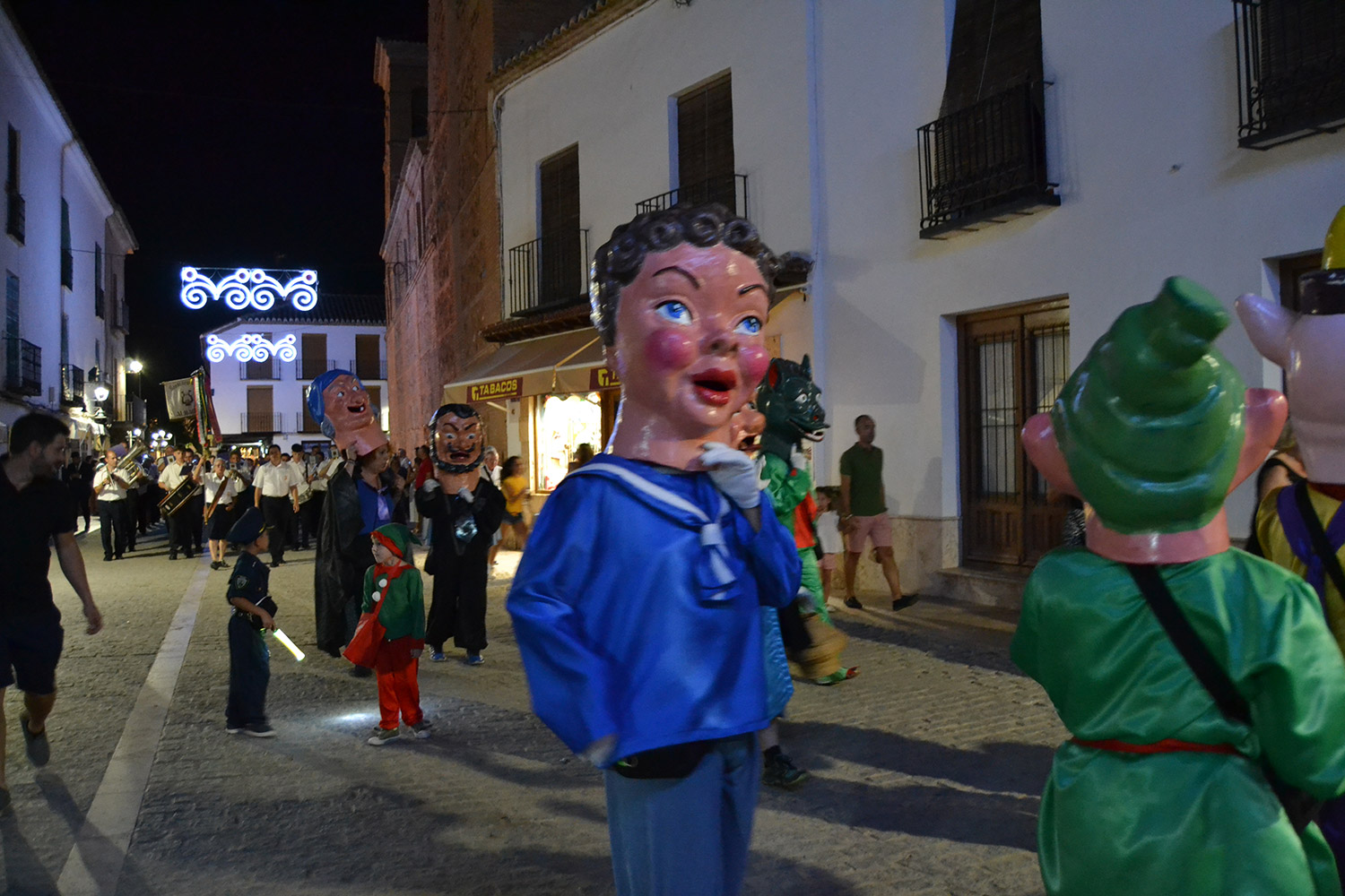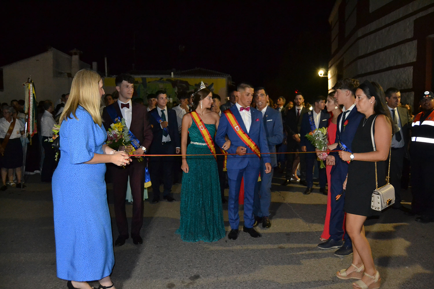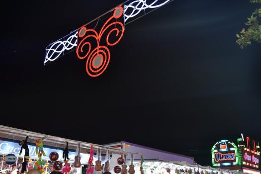 El primer acto oficial de la Feria dio paso al desfile de gigantes y cabezudos, que acompañaron a la comitiva de Reina, damas y zagales, autoridades locales y provinciales y a los muchos vecinos, sobre todo niños, que no quisieron perderse el desfile hasta el recinto ferial. En su arco de entrada, la Reina cortó la cinta inaugural y con ello, el encendido de luces y los fuegos artificiales.